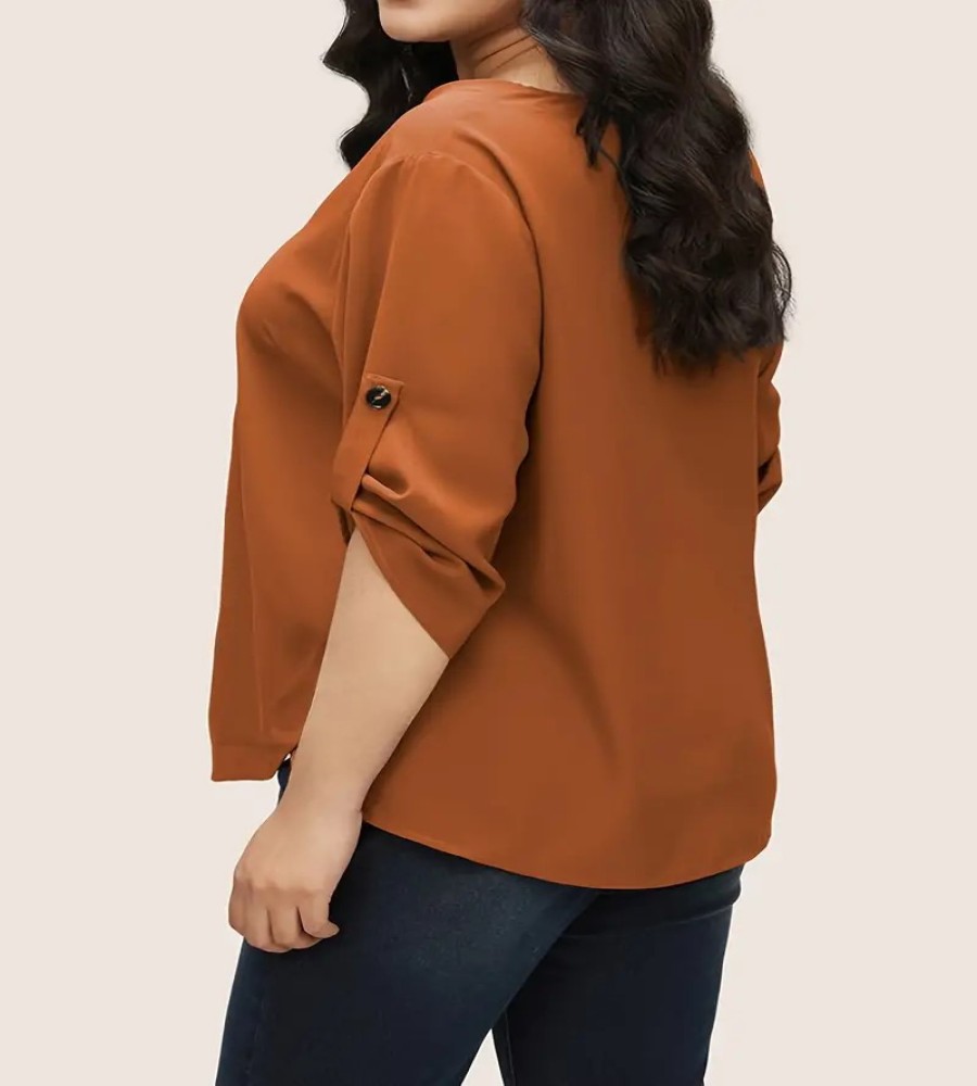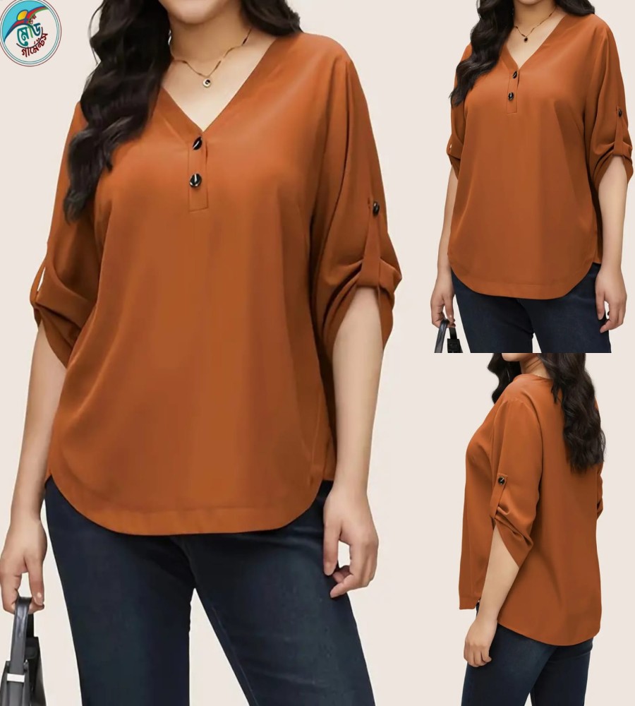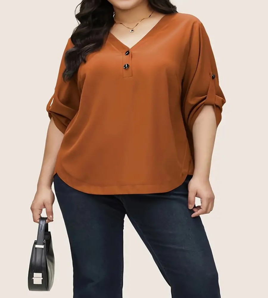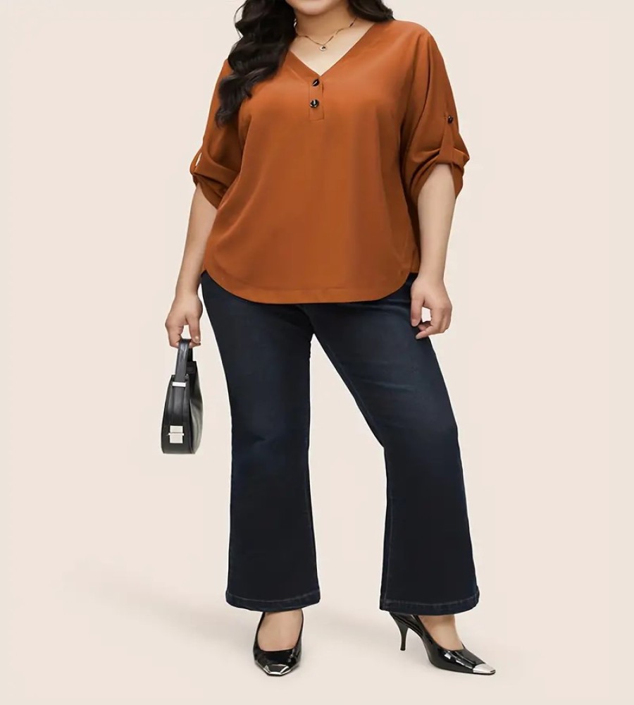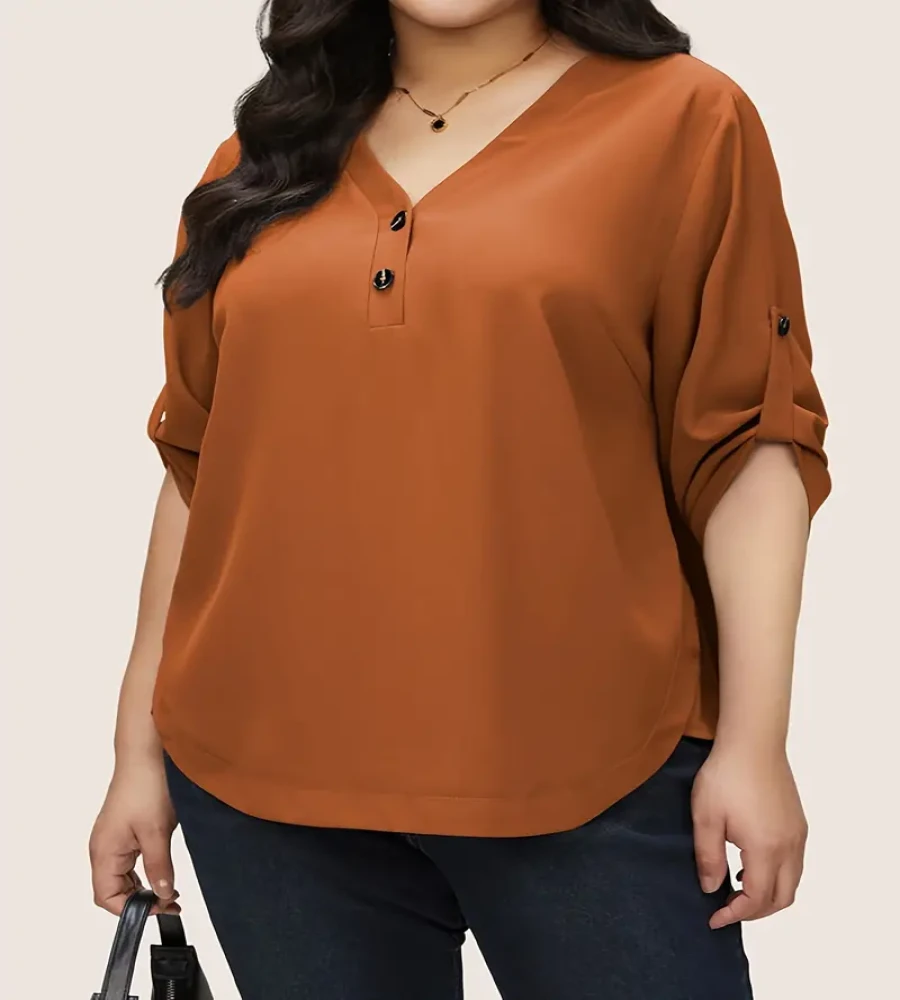 850 view ProductWomen's Qualityful Plus Size Button Front V Neck Blouse, Casual 3/4 Sleeve Blouse for Female’s Plus Size Clothing