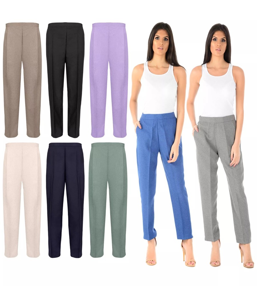 850 view ProductWomenβs Qualityful Half Elasticated Stretch Waist Work Office Trousers Pockets Pants