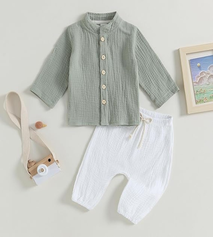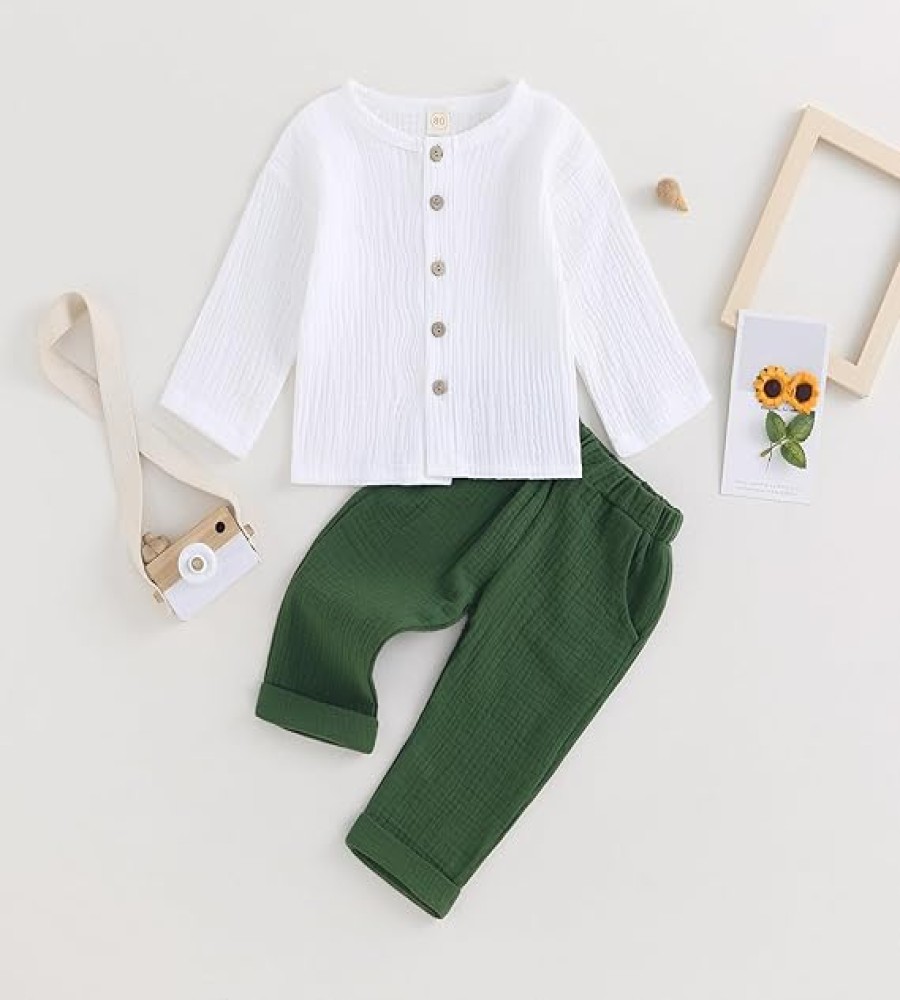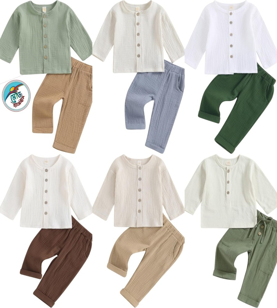Children's short-sleeved summer suit children's cotton linen button short-sleeved T-shirt shorts thin two-piece set.