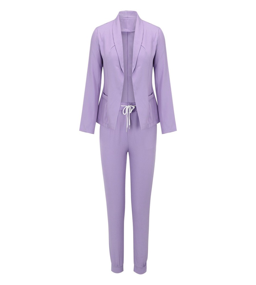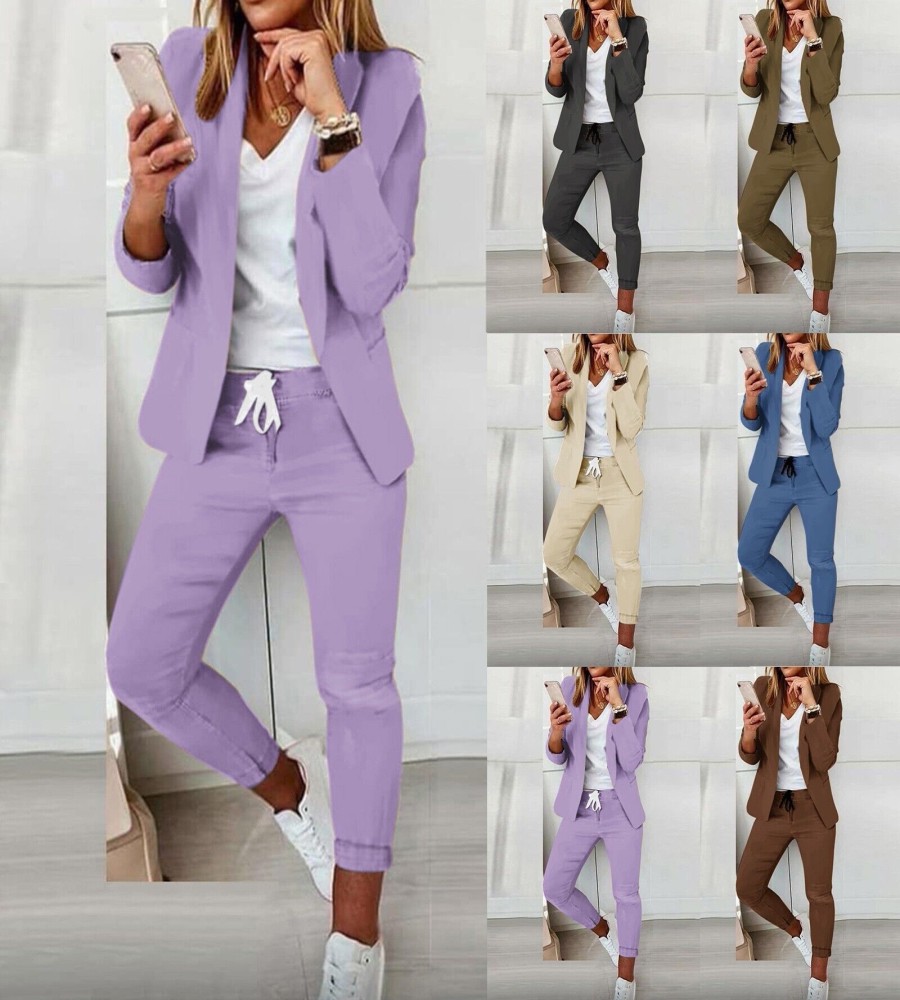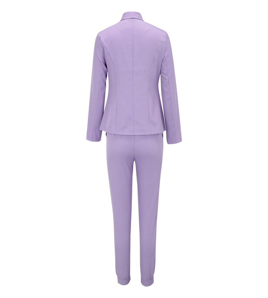 Women's Two Piece Lapels Suit Set Office Business Long Sleeve Jacket Pant Suit Slim Fit Trouser Jacket Suit