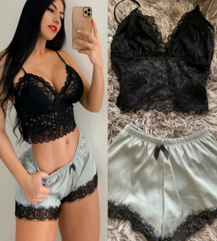 910 view ProductSfy1217 Cheap New Arrival Women Sexy Lingerie Satin Panties See Through Lace Bra Set Camisole Sleepwear Women