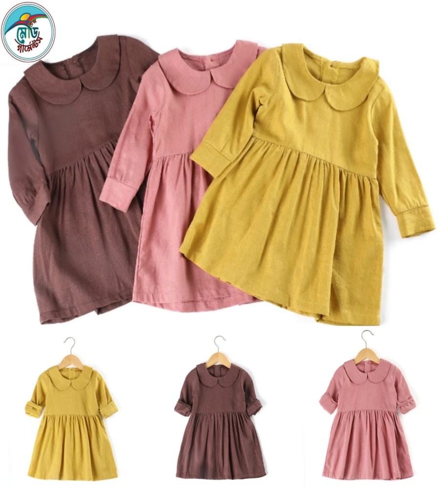 ৳ 850 view ProductBaby Girl Cotton Dress Toddler Little Girl Pan Collar Wood Buttons Spring Fall Vintage Fashion Soft Dress