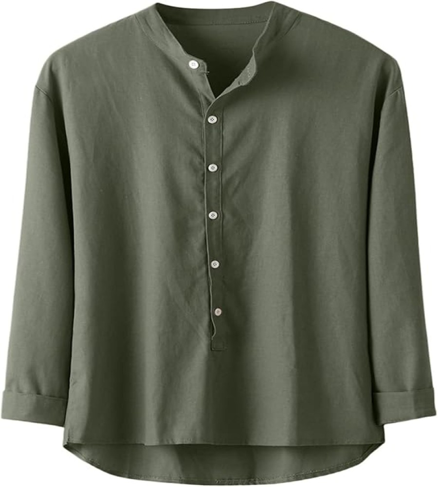 ৳ 850 view ProductMen’s Casual Cotton Shirt Button Down Solid Color Long Sleeve Henley T-Shirts Casual Trendy Comfy Summer Loose Outfits