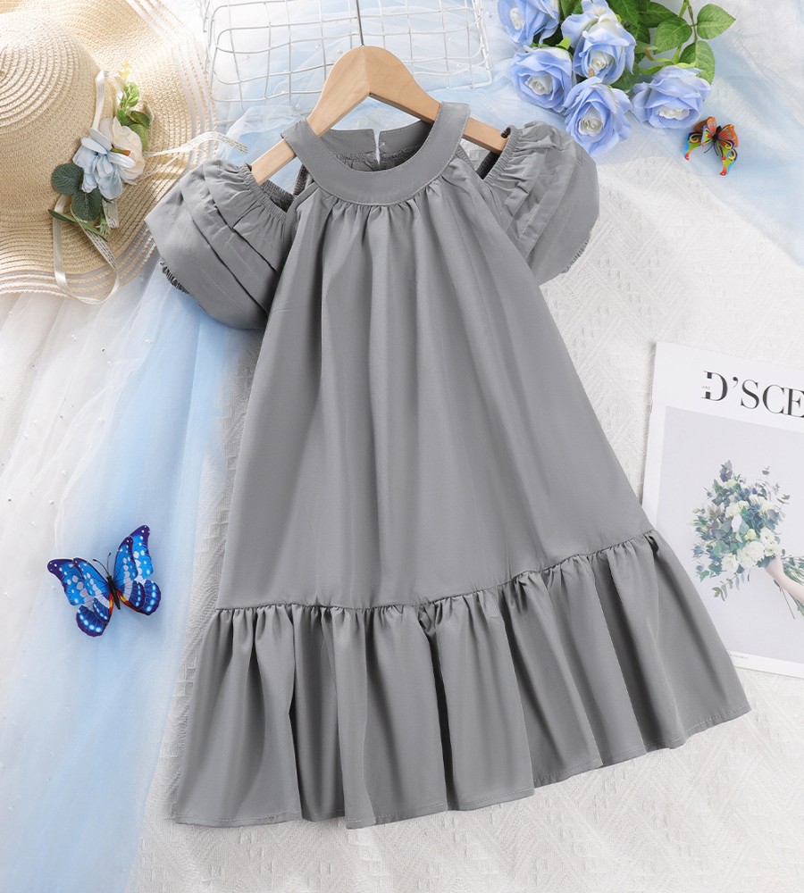 ৳ 850 view ProductSummer Solid Color Puff Sleeve Dress for Girls - Casual Party Wear