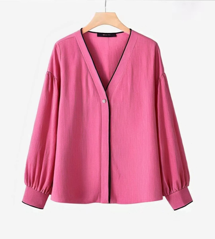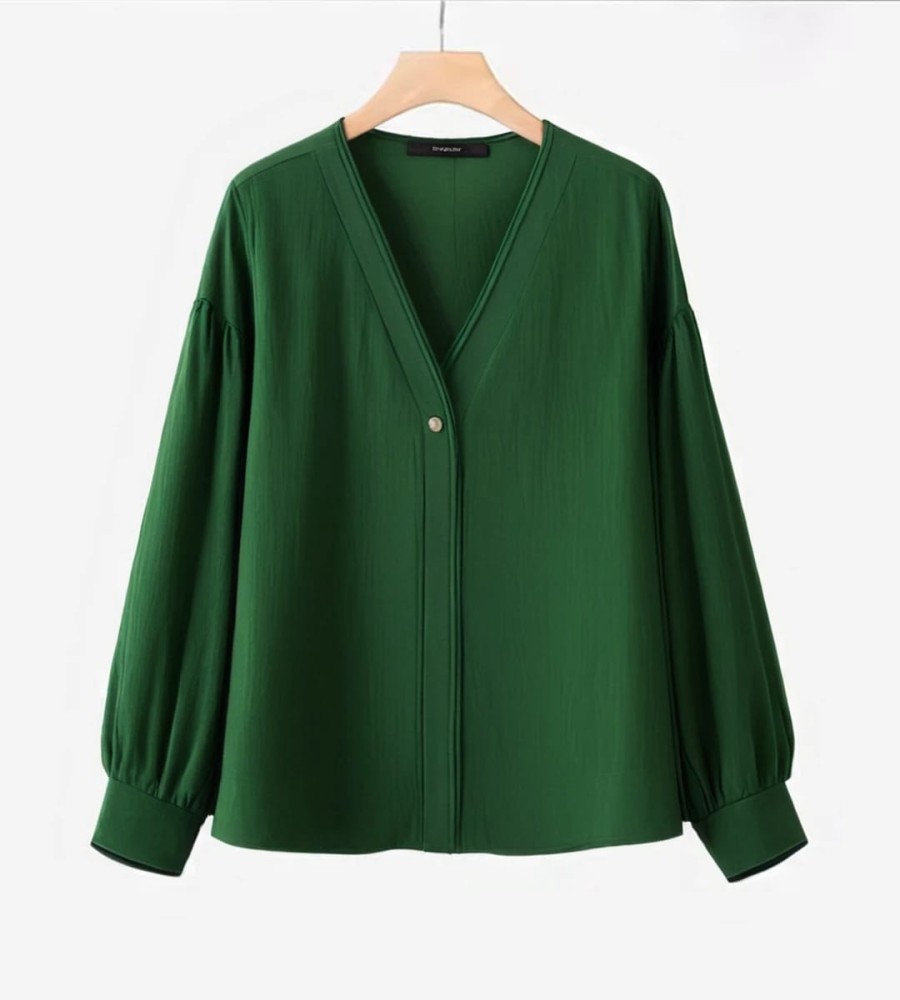 850 view ProductStylish V-Neck Work Shirt for Women: Lightweight Long Lantern Sleeve Blouse