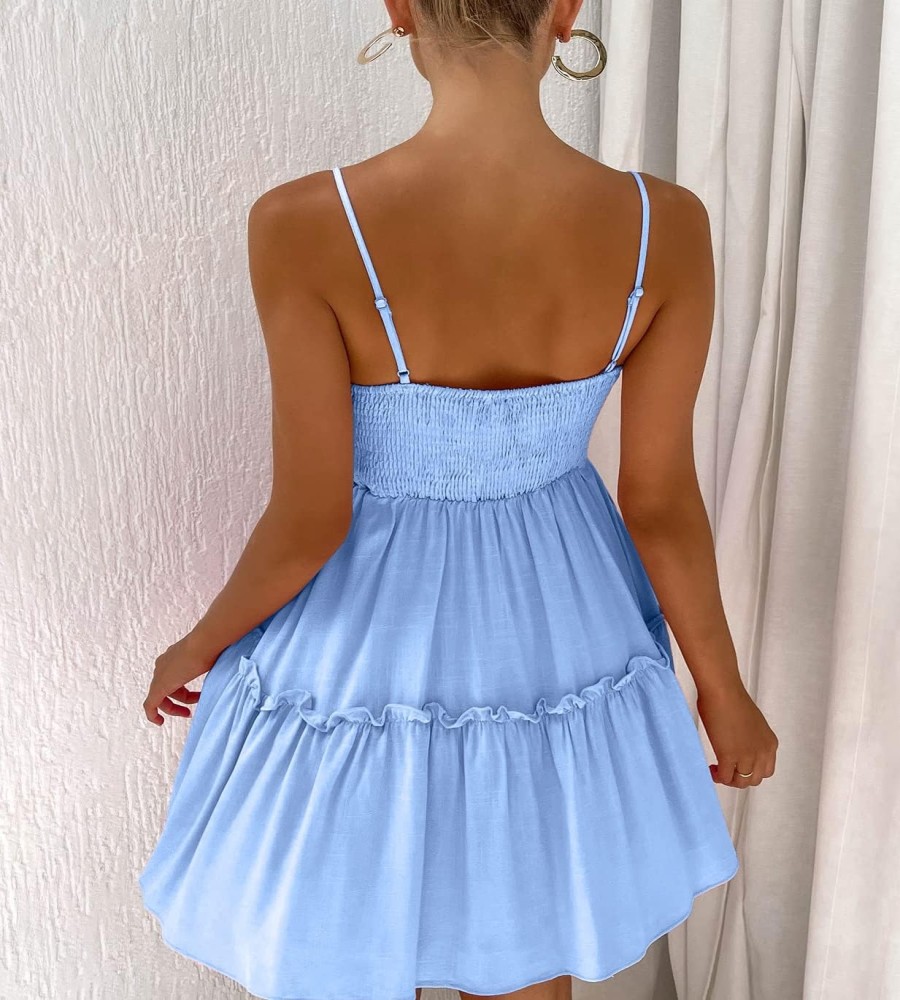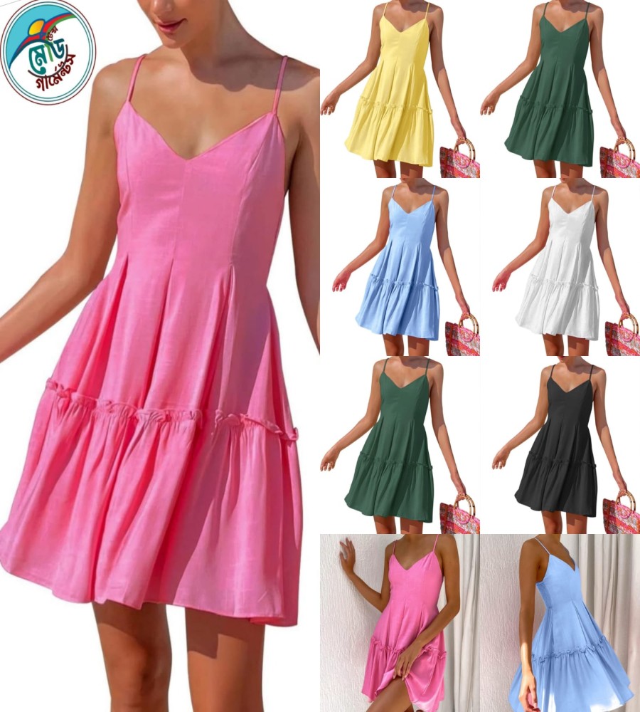 This Women’s Cotton Soft Spaghetti Strap Dress is the ultimate blend of comfort and chic style. Designed with a lightweight, breathable fabric, it drapes beautifully for hot summer days. The flattering V-neckline and adjustable straps give it a modern feminine touch, while the empire waist and flowy ruffled hem ensure a relaxed yet stylish silhouette. Perfect for beach strolls, brunch dates, or casual outings, this dress is your go-to summer essential.