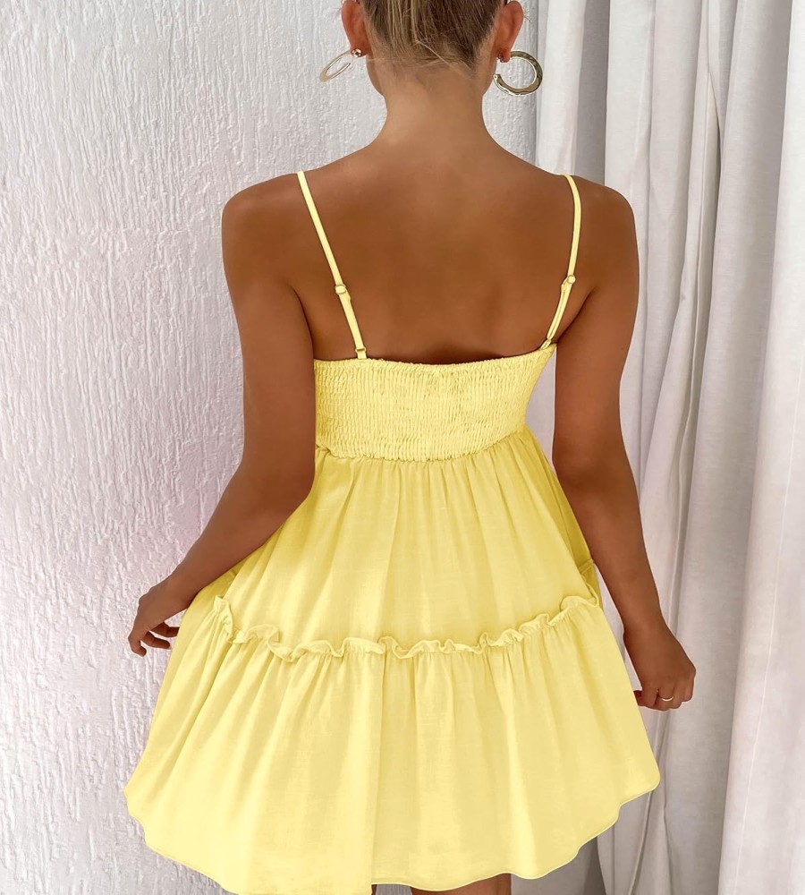 Pair this dress with a woven straw bag and flat sandals for a relaxed beach-ready look, or elevate it with wedges and layered jewelry for a stylish brunch outfit.