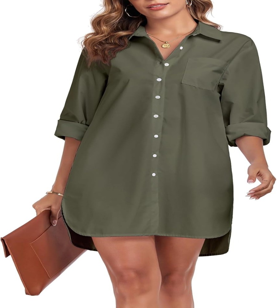 For a casual daytime look, pair this shirt dress with sneakers and a tote bag. For a work-ready style, wear it with slim-fit trousers or leggings and loafers. In the evening, dress it up with a belt at the waist, statement earrings, and heeled sandals for a sleek yet effortless outfit.