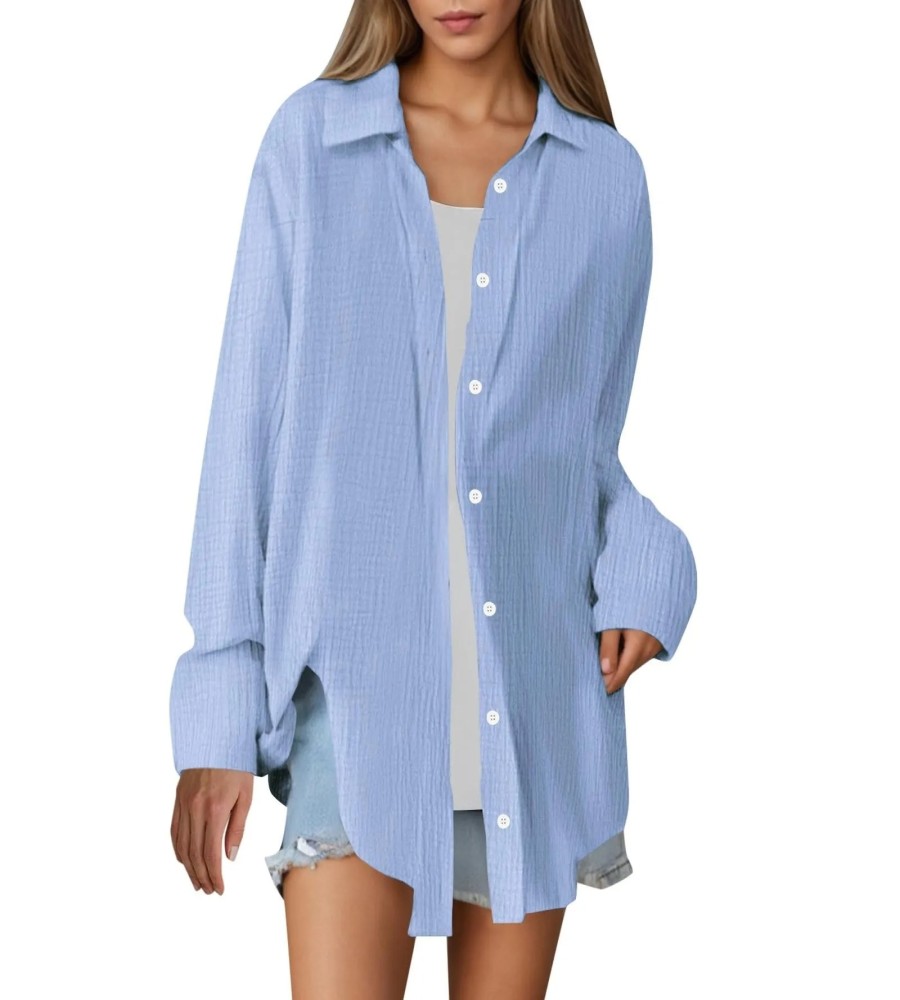 For a chic casual look, layer this shirt over a fitted tank with denim shorts and sneakers. For a dressier vibe, pair it with slim-fit trousers, gold jewelry, and heeled sandals. It also doubles as a stylish beach cover-up for summer getaways.