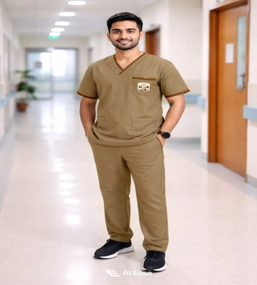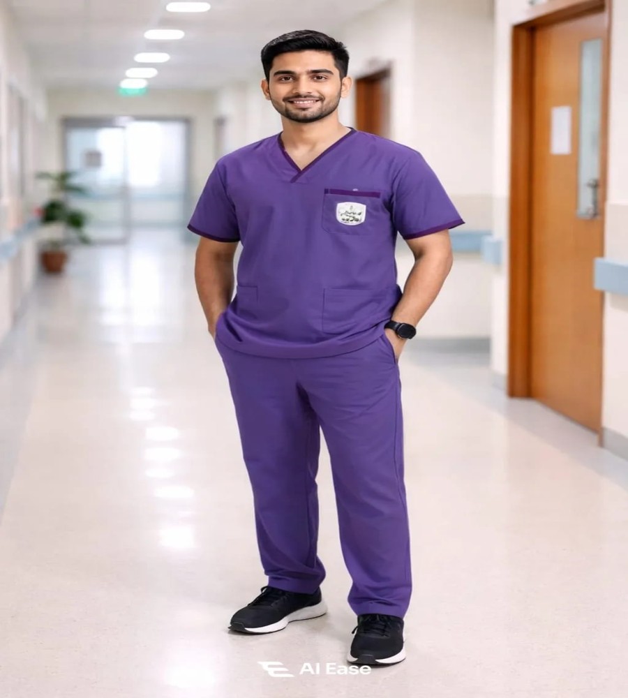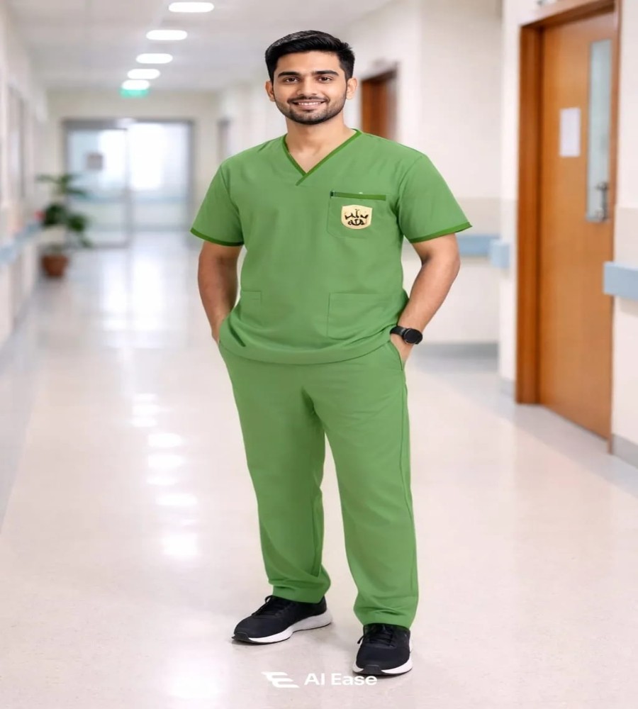 This men’s medical scrub set is designed for professionals who require comfort, durability, and a neat appearance throughout long working hours. Made from premium micro twill suiting fabric, it offers a smooth texture, structured fall, and long-lasting wear. The V-neck scrub top allows easy movement, while the matching pant with elasticated waistband ensures a secure and comfortable fit. Ideal for doctors, nurses, technicians, and healthcare staff, this scrub set delivers both functionality and professional style.