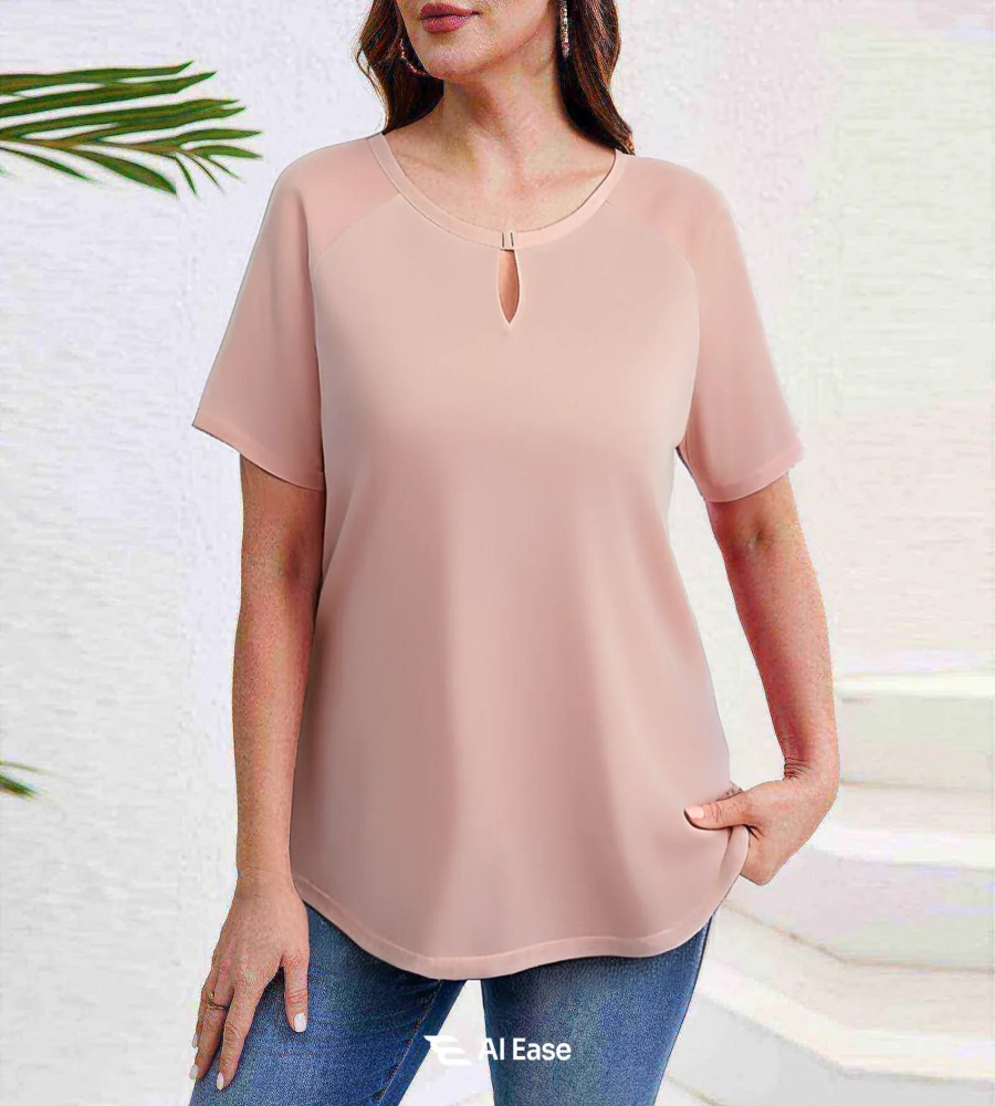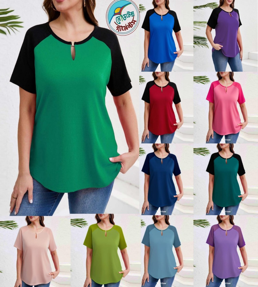 This women’s raglan sleeve top is crafted from premium micro cherry fabric, offering a soft, breathable, and lightweight feel that ensures all-day comfort. The keyhole neckline with metallic detailing adds a subtle touch of elegance, making it suitable for both casual and smart occasions.