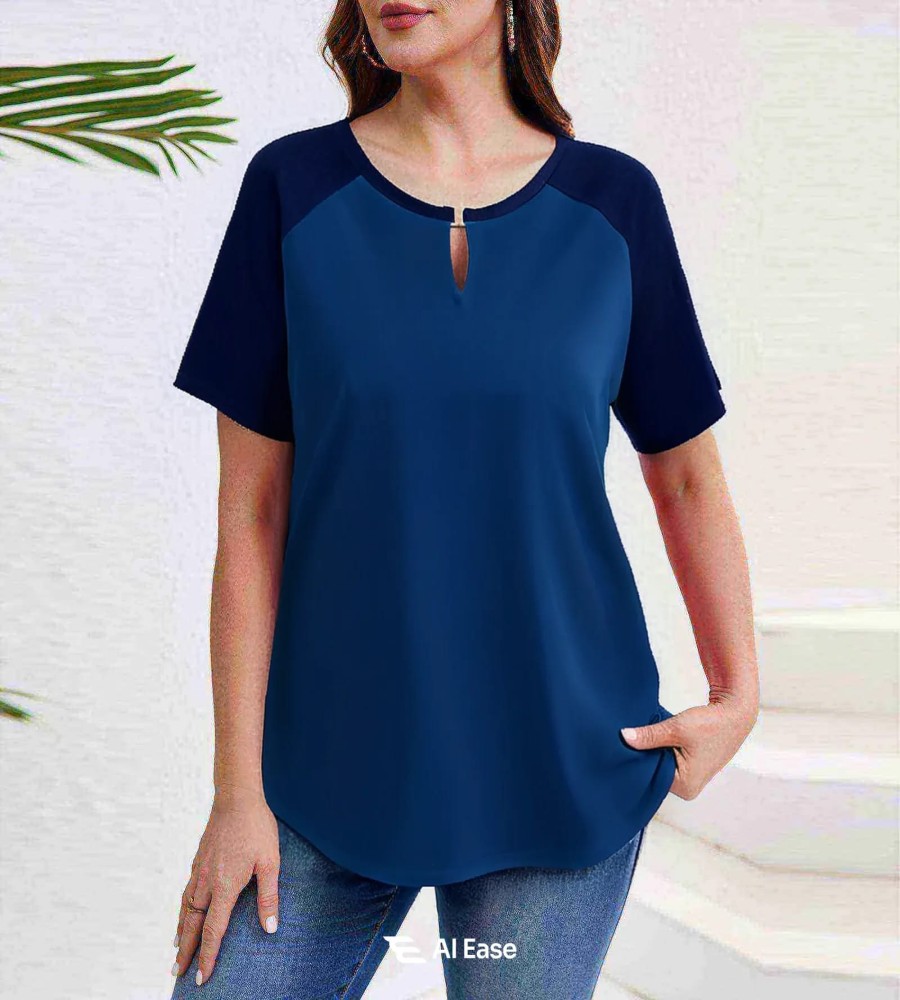 Round Neck with Elegant Keyhole Detail & Metal Accent