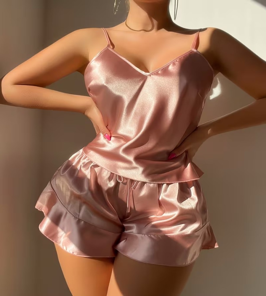 Feel luxurious and comfortable with this elegant silk satin nightwear set for women. Designed with a soft spaghetti strap camisole and matching relaxed fit shorts, this outfit gives a smooth touch on the skin and ensures breathable comfort throughout the night. Perfect for bedtime, lounging, or casual home wear while maintaining a stylish and modern look.