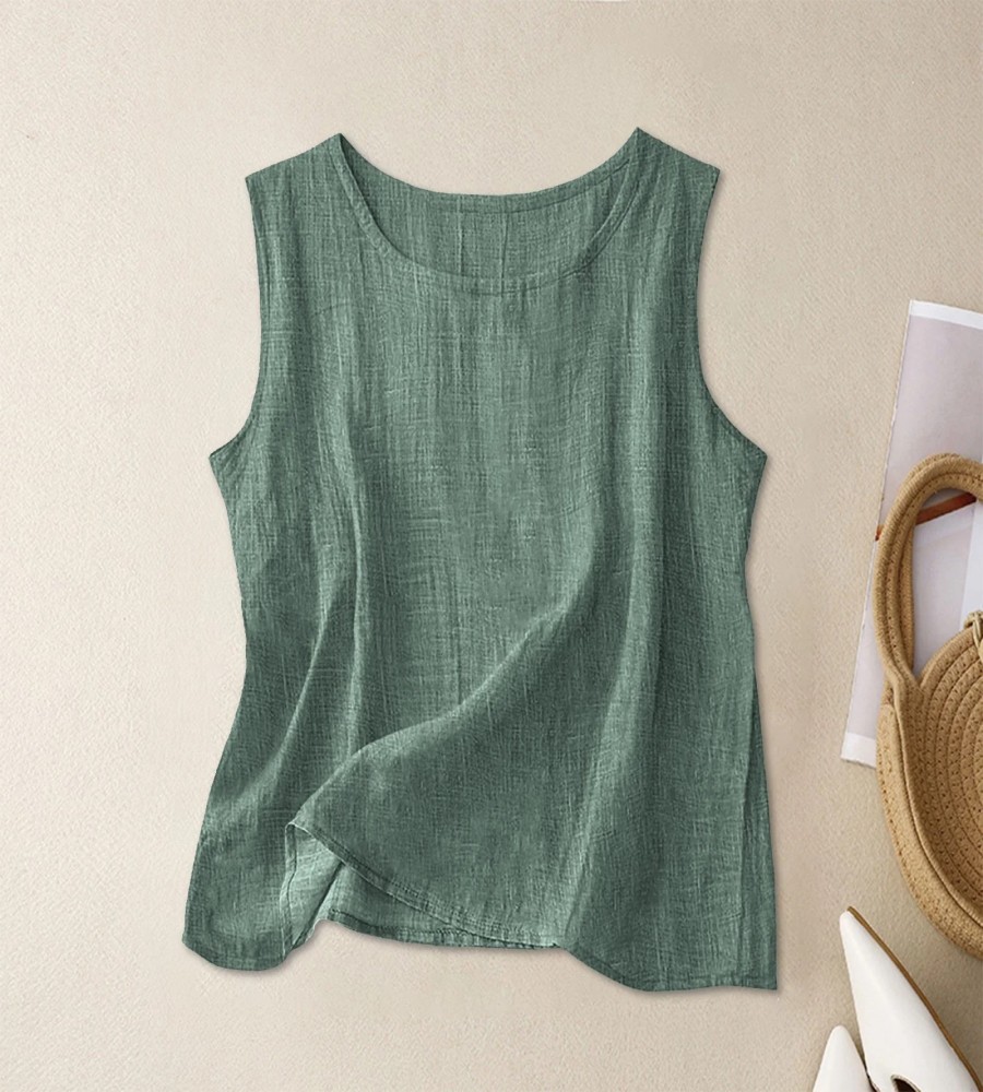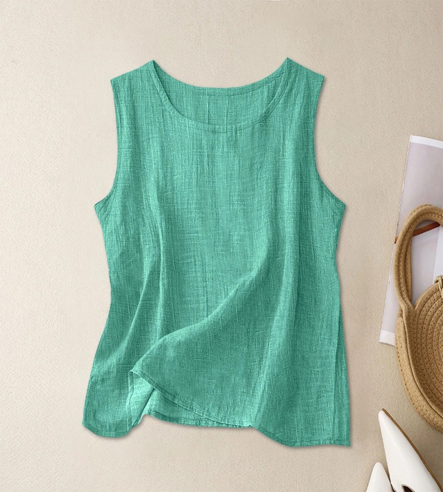 Elevate your summer basics with this versatile women’s cotton linen sleeveless tunic top. Crafted from a high-quality cotton linen blend, this top offers a refined natural texture that keeps you cool and comfortable in warm weather. The simple round neck and relaxed silhouette provide a timeless, minimalist look that pairs effortlessly with trousers, skirts, or denim. Available in a variety of earthy and vibrant tones, it is an essential piece for both casual daily wear and professional layering.