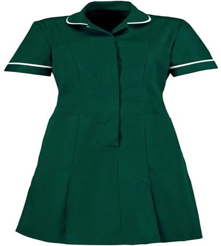 This professional women’s nurse uniform dress is crafted from premium Cotton fabric, ensuring superior comfort and breathability throughout long working hours. The soft and lightweight material allows proper air circulation, making it ideal for hospital and clinical environments.