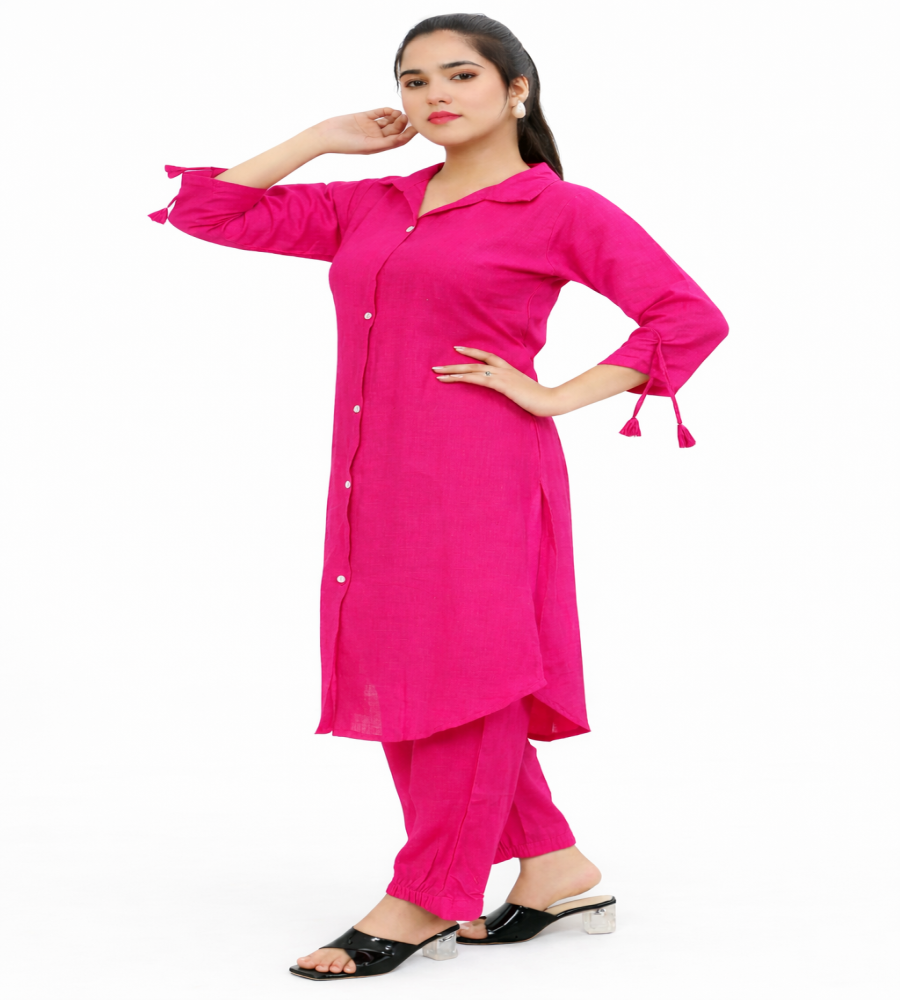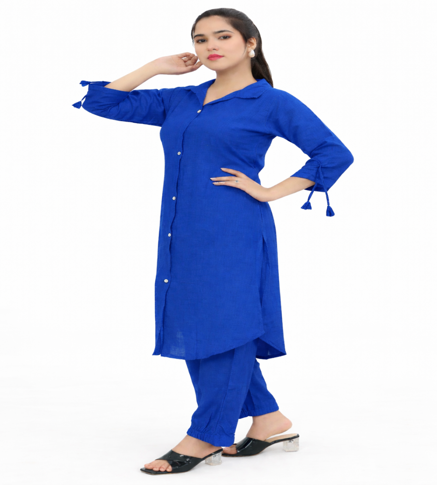 Elevate your everyday wardrobe with this breathable cotton linen kurta pant co-ord set. Designed for comfort and elegance, the soft textured fabric keeps you cool while the tailored silhouette offers a polished look. Perfect for casual outings, office wear, or daily modest styling.