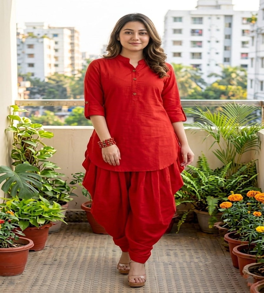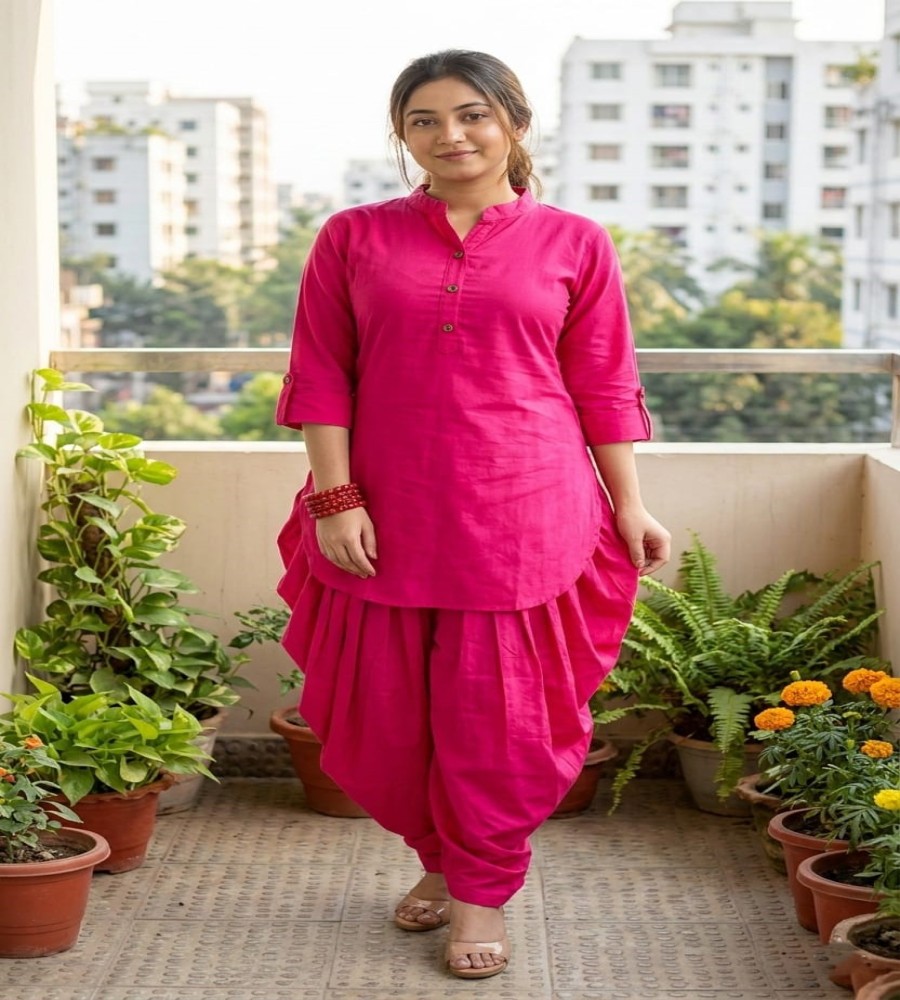 Designed for effortless elegance, this cotton soft kurta dhoti pant set offers breathable comfort with a graceful silhouette. The soft natural texture feels gentle on the skin, making it ideal for long wear. The structured neckline and relaxed dhoti pants create a modern yet traditional look.