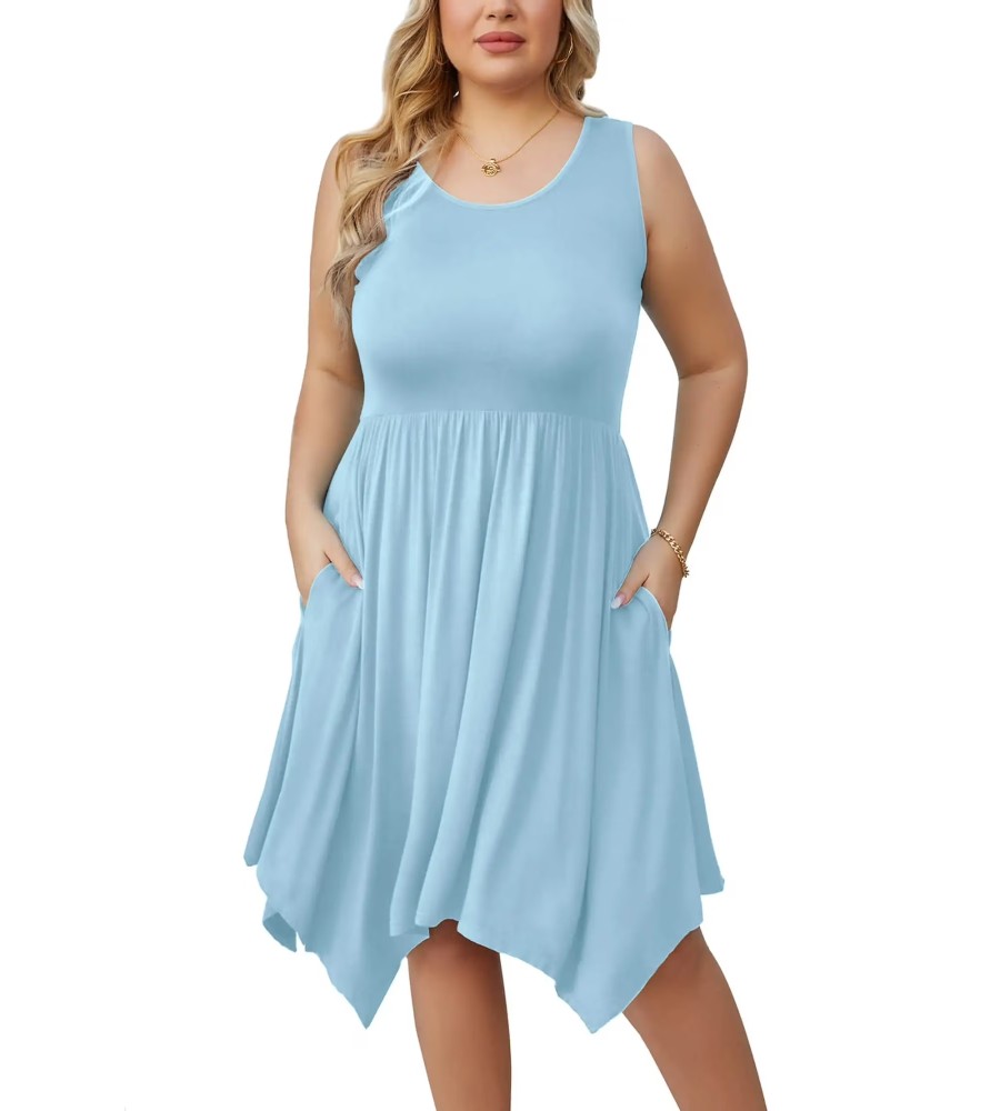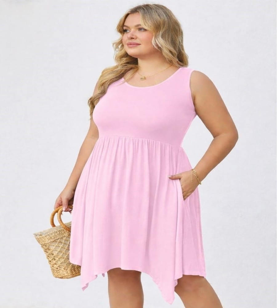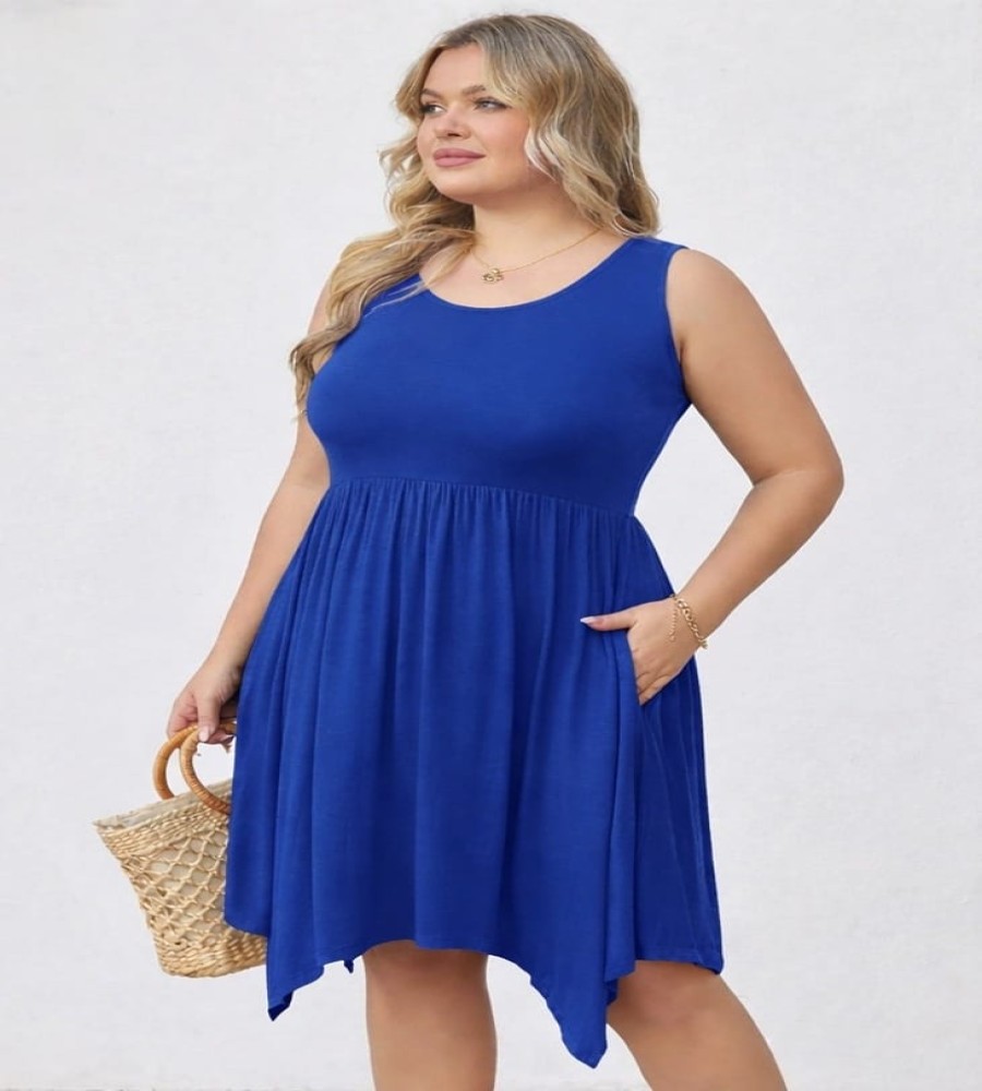 The relaxed A-line silhouette creates a flattering and comfortable fit suitable for everyday wear. A softly gathered waist enhances the flow of the dress, while the asymmetrical hemline adds a modern and stylish touch. The addition of side pockets offers practical convenience, making this dress a perfect choice for casual outings, vacations, or daily activities.