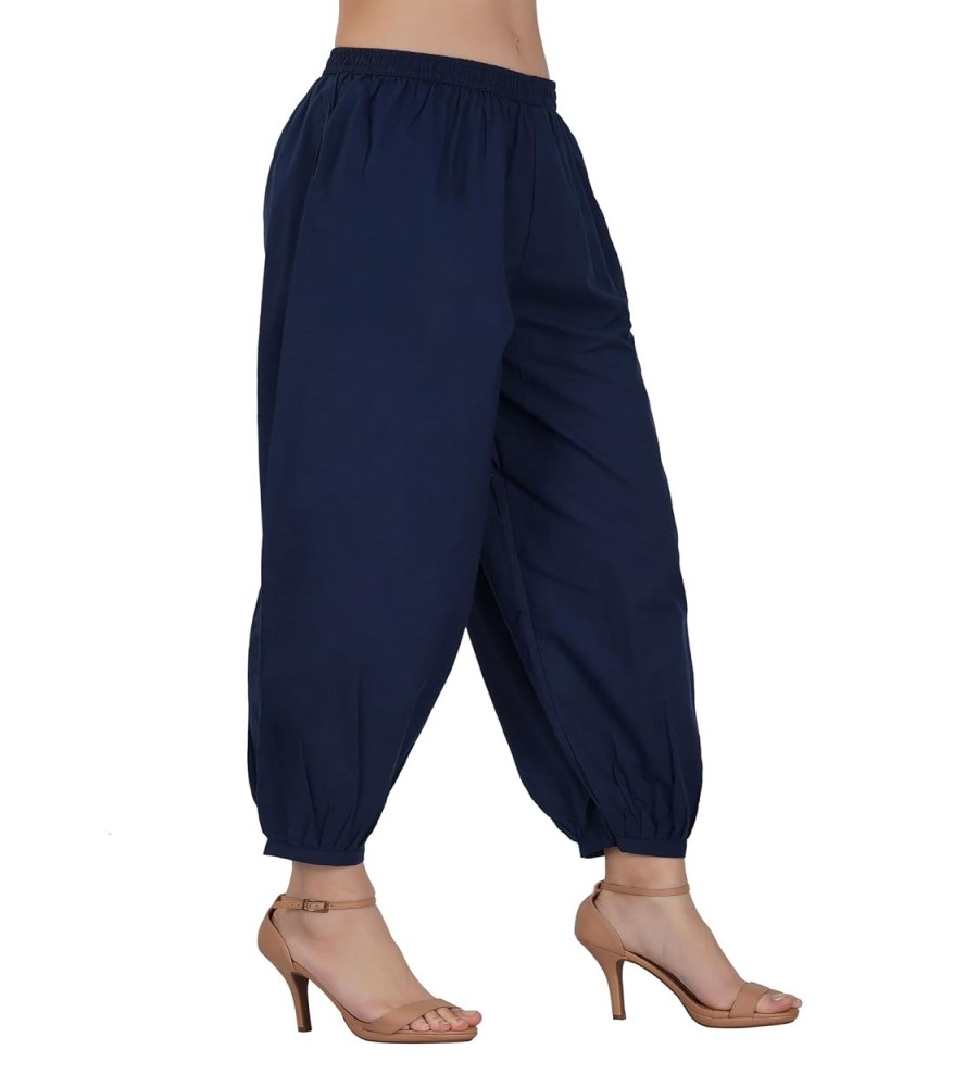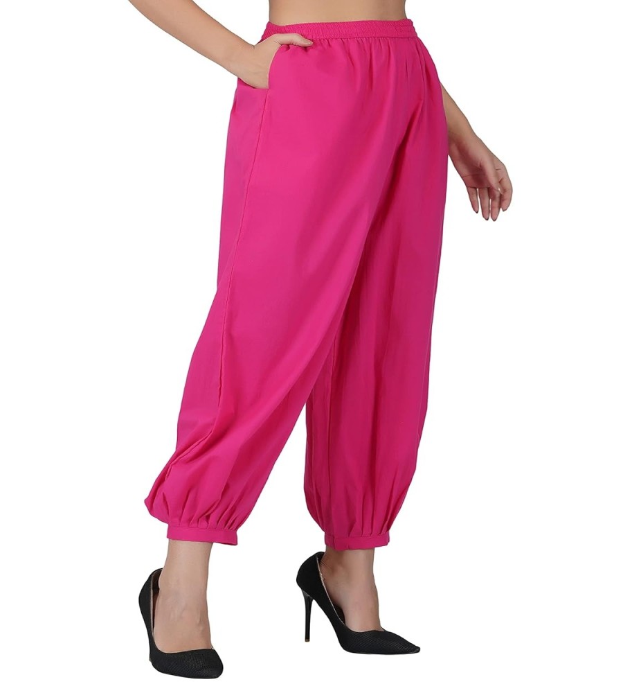 These Women’s Cotton Soft Fabric Harem Dhoti Pants are designed to deliver a perfect blend of relaxed comfort and modern casual style. Crafted from breathable cotton soft fabric, these pants provide a lightweight and smooth feel that keeps you comfortable throughout the day. The loose harem-style silhouette offers excellent freedom of movement, while the elastic waistband ensures a secure and flexible fit. Designed with practical side pockets and gathered ankle cuffs, these pants combine functionality with effortless style. Ideal for casual outings, travel, lounging, or everyday wear, these versatile pants make a comfortable and stylish wardrobe essential.