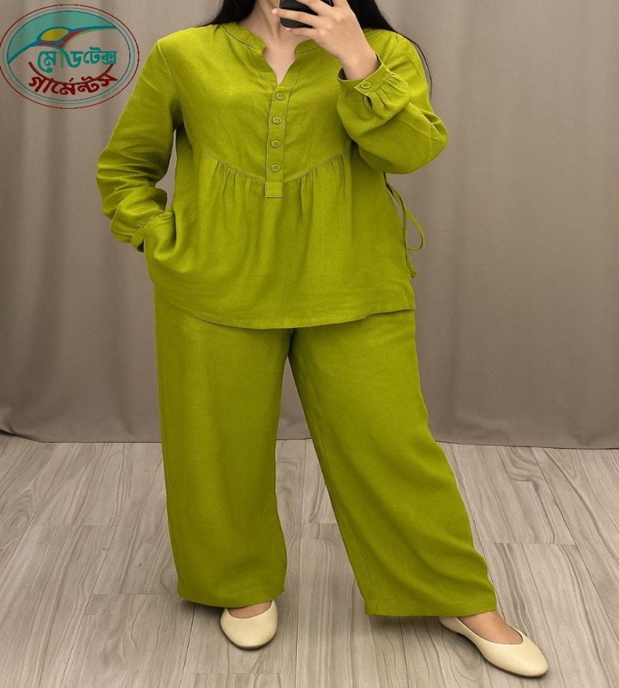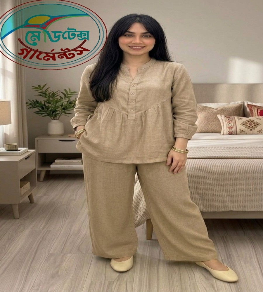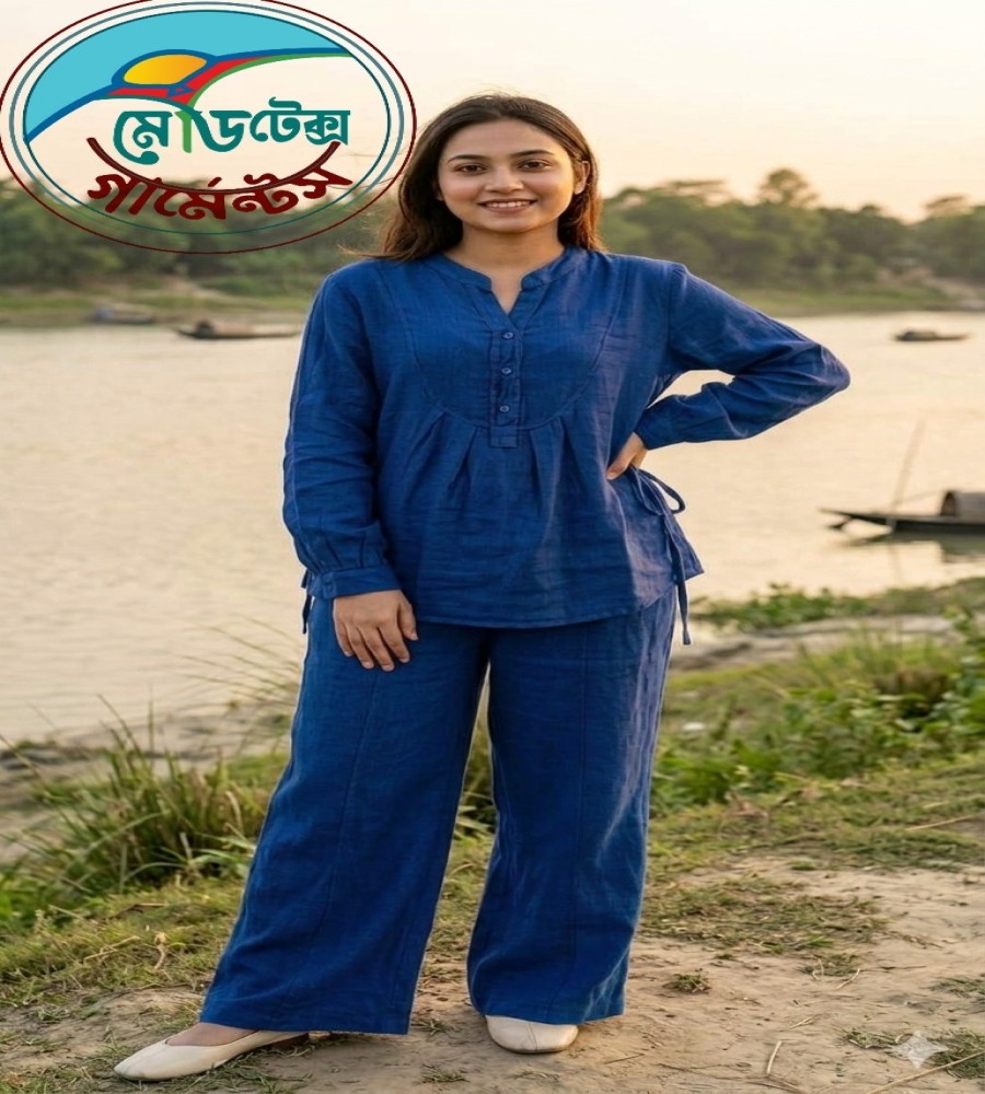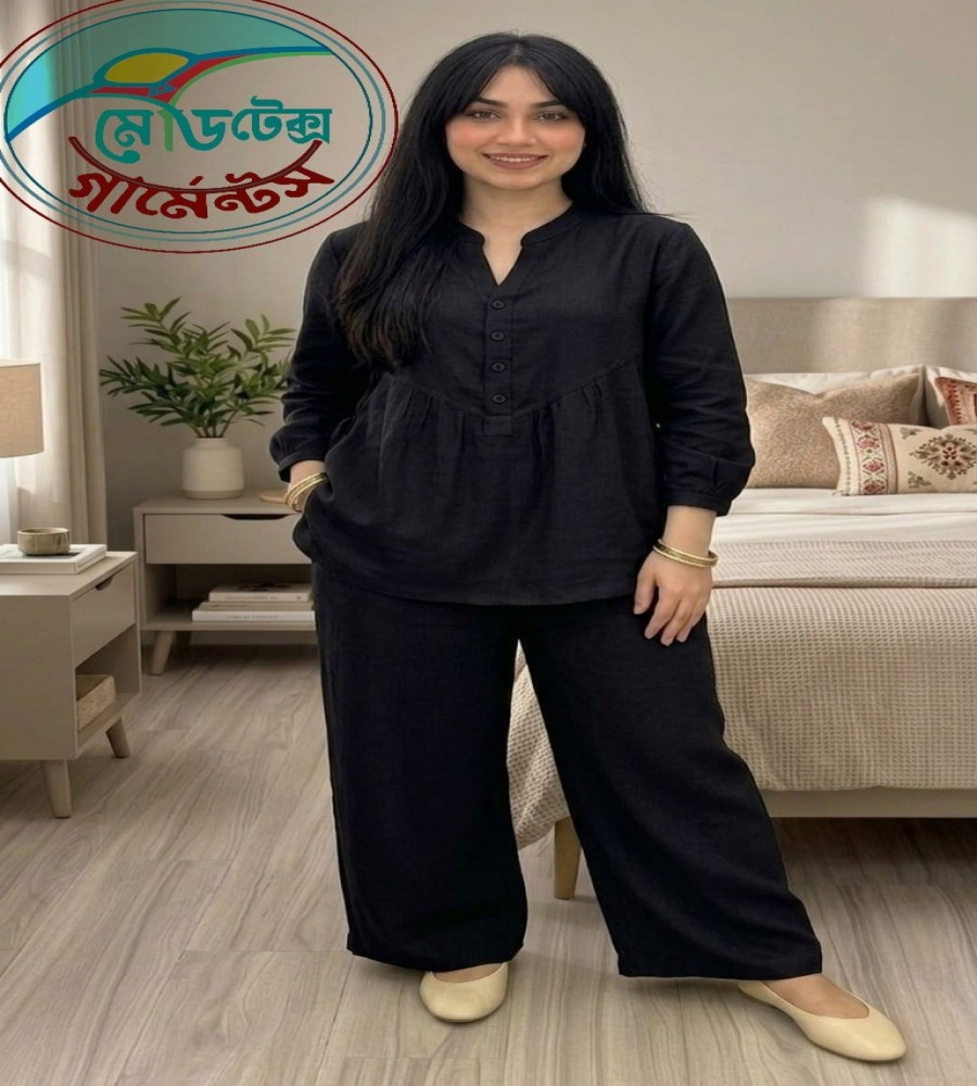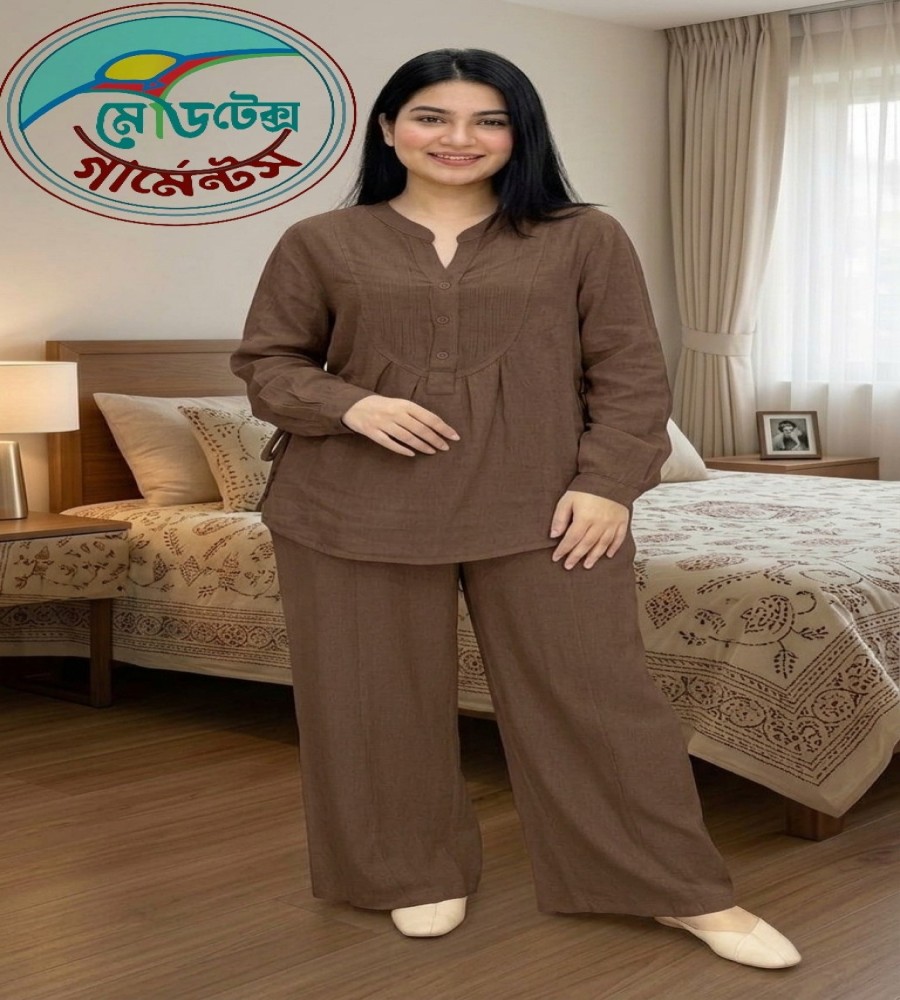 Upgrade your everyday comfort with this stylish Women’s Fine Cotton Co-Ord Set from Medi Tex Garments. Designed with a perfect balance of comfort and elegance, this two-piece outfit includes a button-down top and loose-fit pants, making it ideal for daily wear.