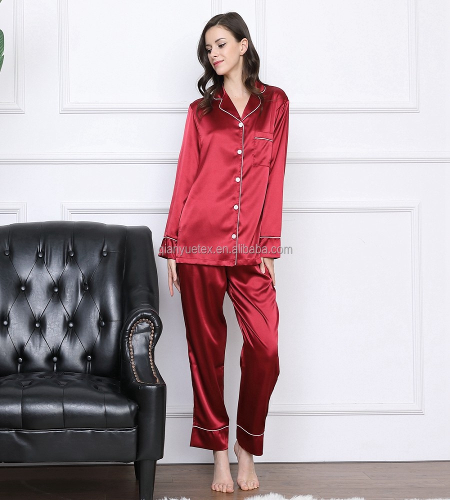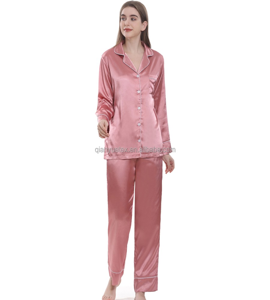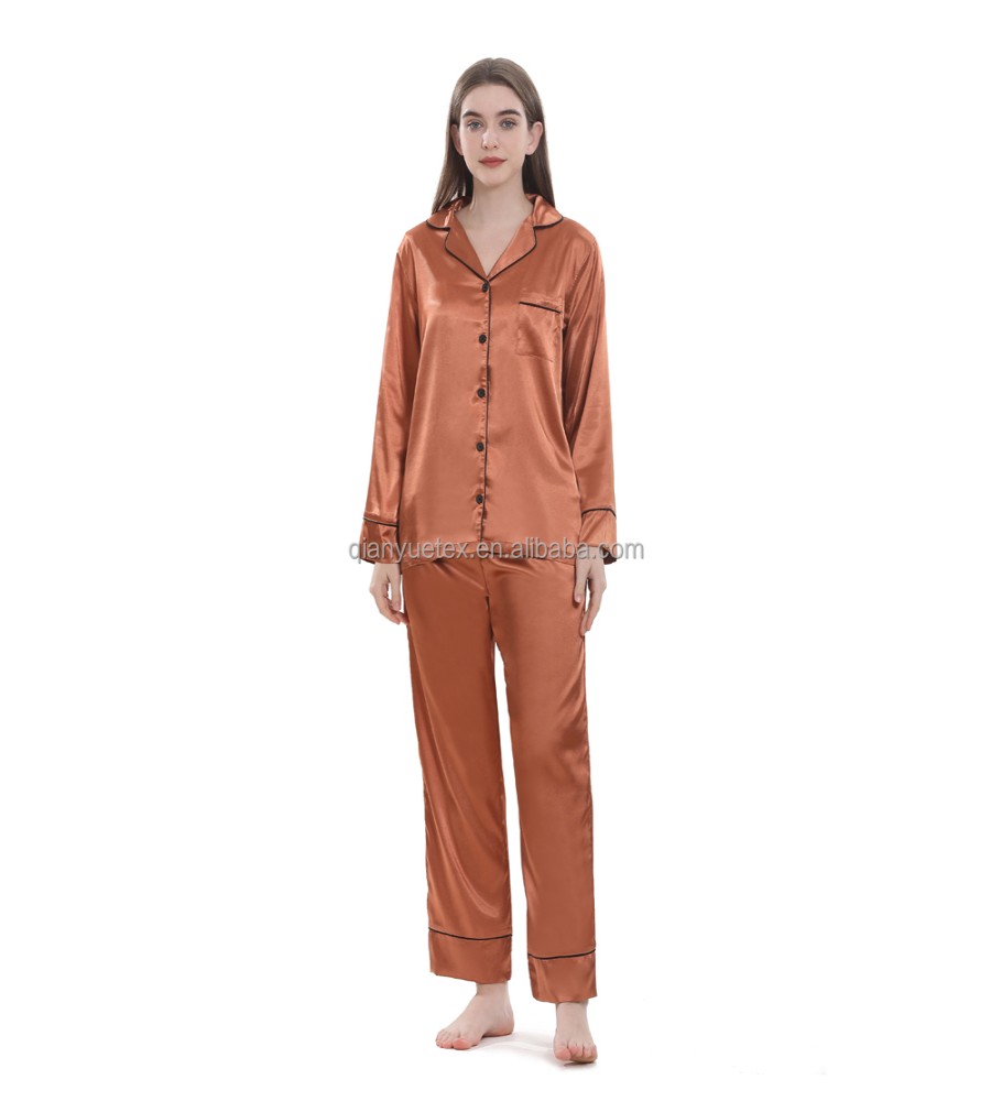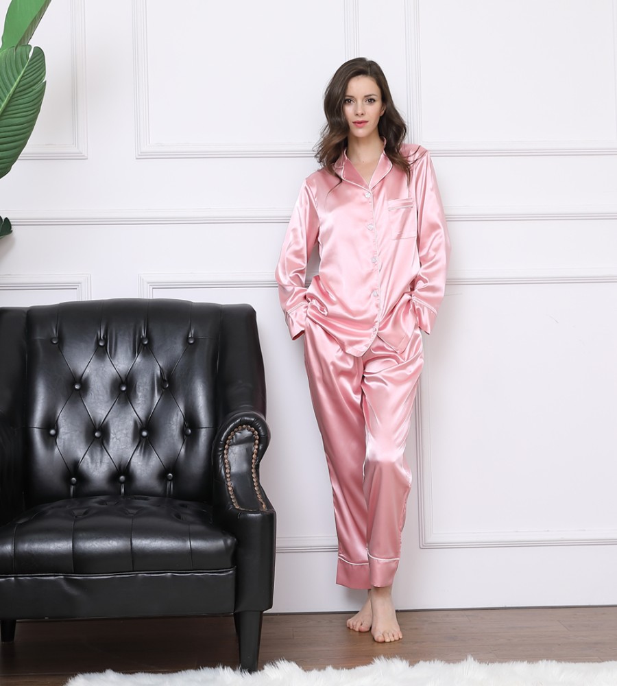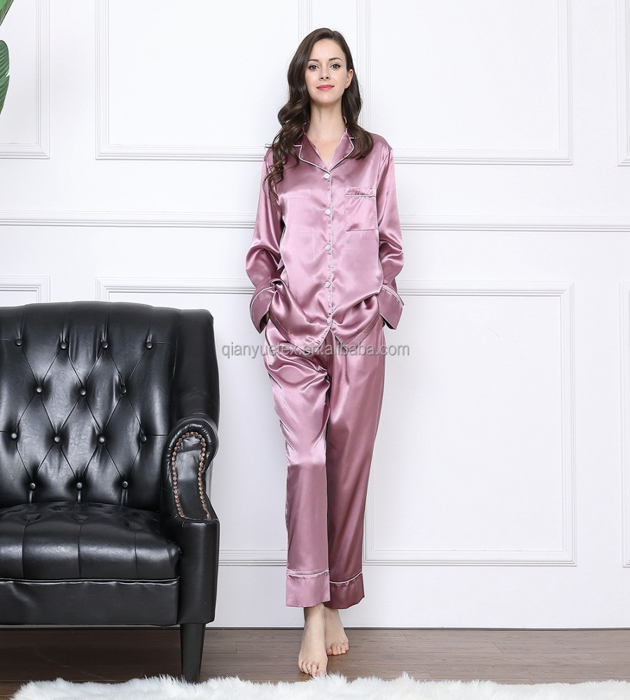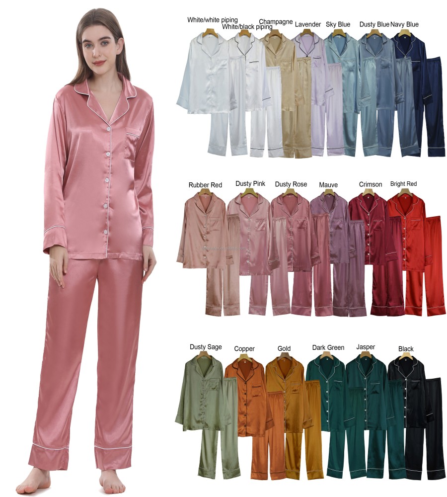 910 view ProductFabric Type- Satin Silk Fabric Feature- QUICK DRY, Plus Size Material- silk satin Item Type- Nighty Set Pattern Type- Solid Collar- Turn-down Collar Closure Type- Elastic Waist Length- Full Length Sleeve Length(cm)- Full Brand Name -MediTex Gaements Season- All Season Product Name- Women long sleeve pyjamas Size- 34,36,38,40,42,44,46,48,50
