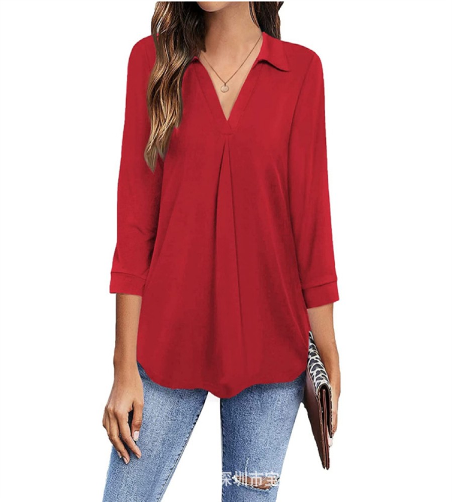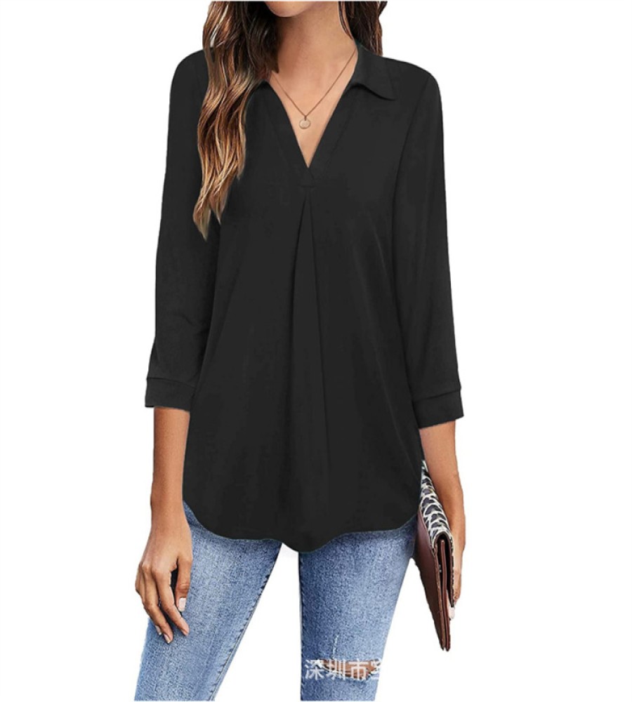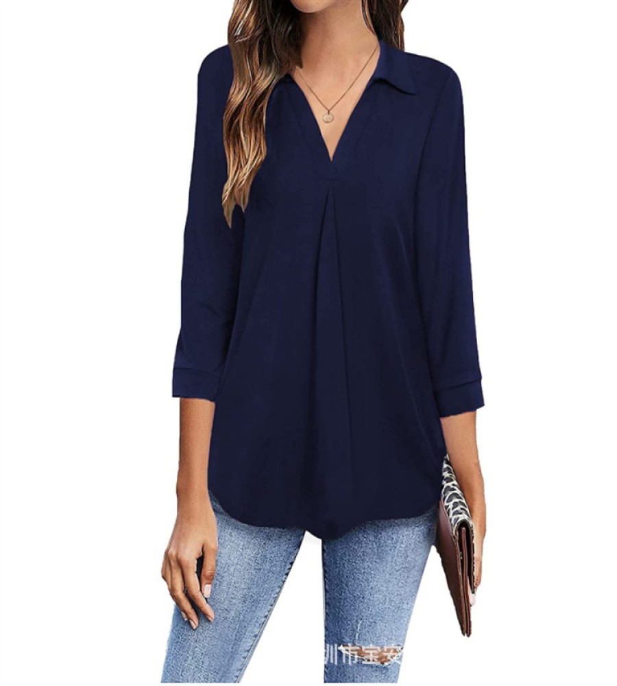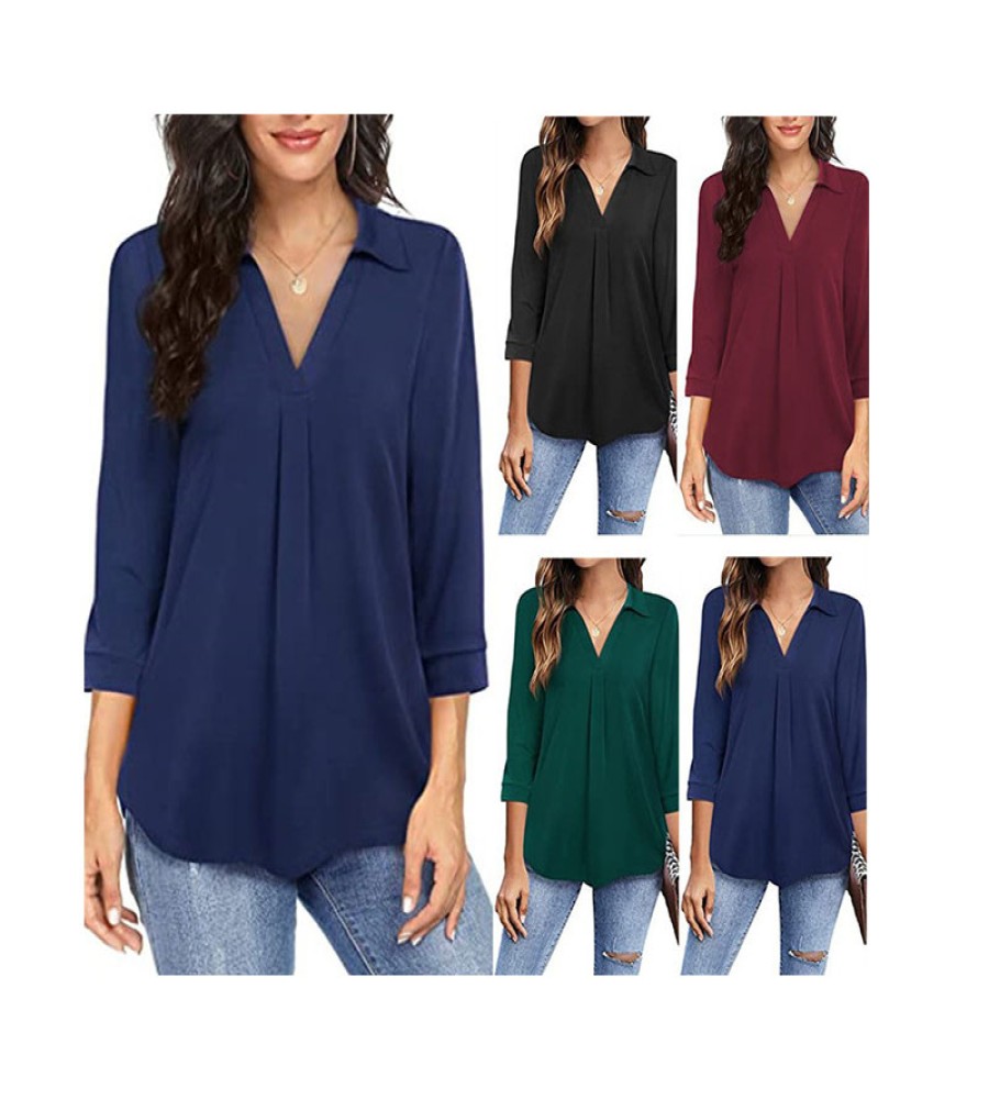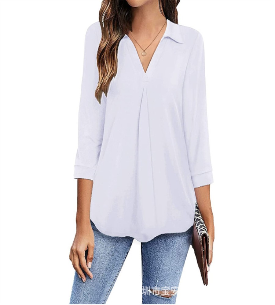 850 view ProductLadies Business Casual Tops 3/4 Sleeve Tunic Blouses V Neck Loose Summer Workwear Shirt