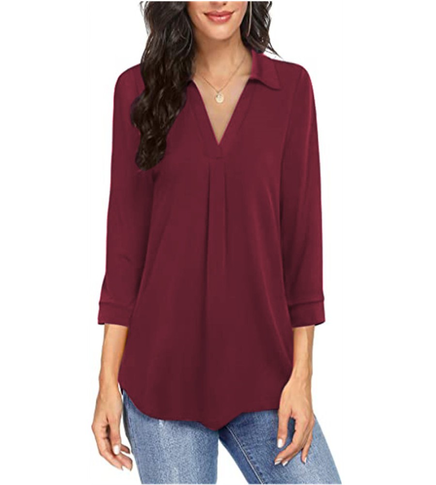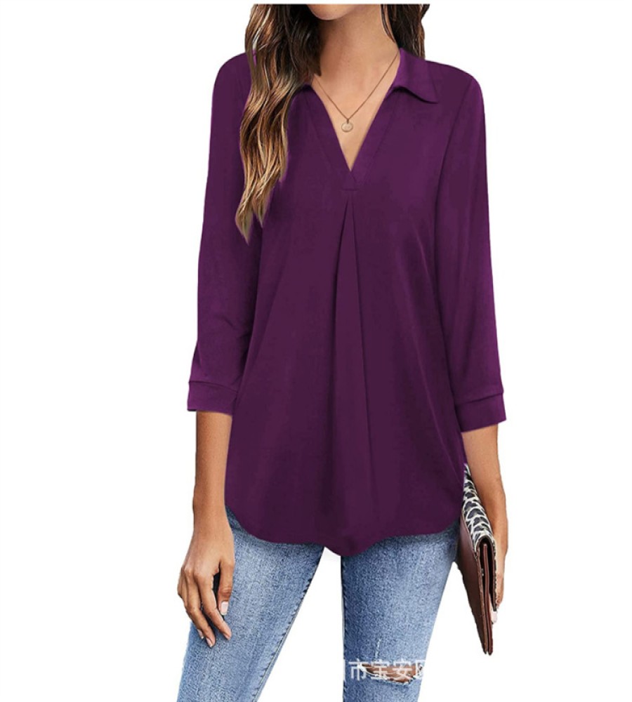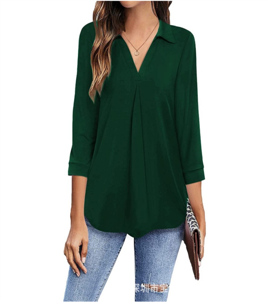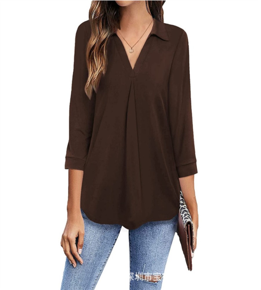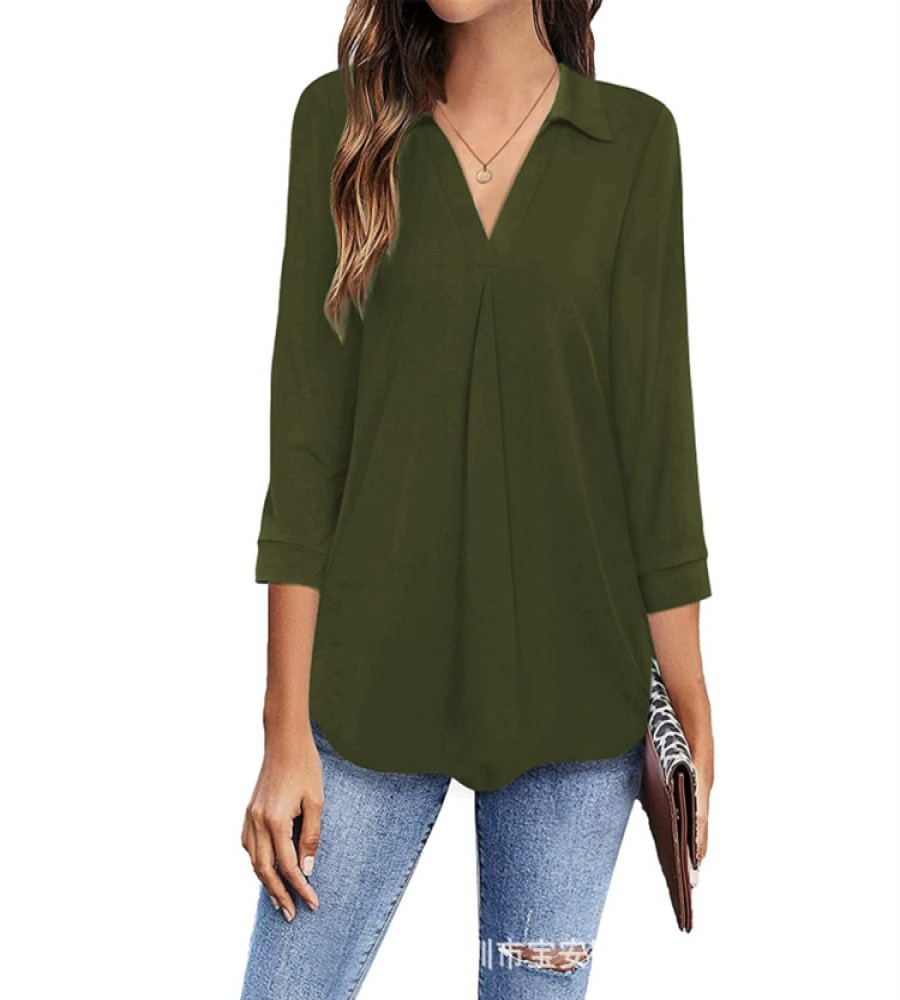 850 view ProductLadies Business Casual Tops 3/4 Sleeve Tunic Blouses V Neck Loose Summer Workwear Shirt
