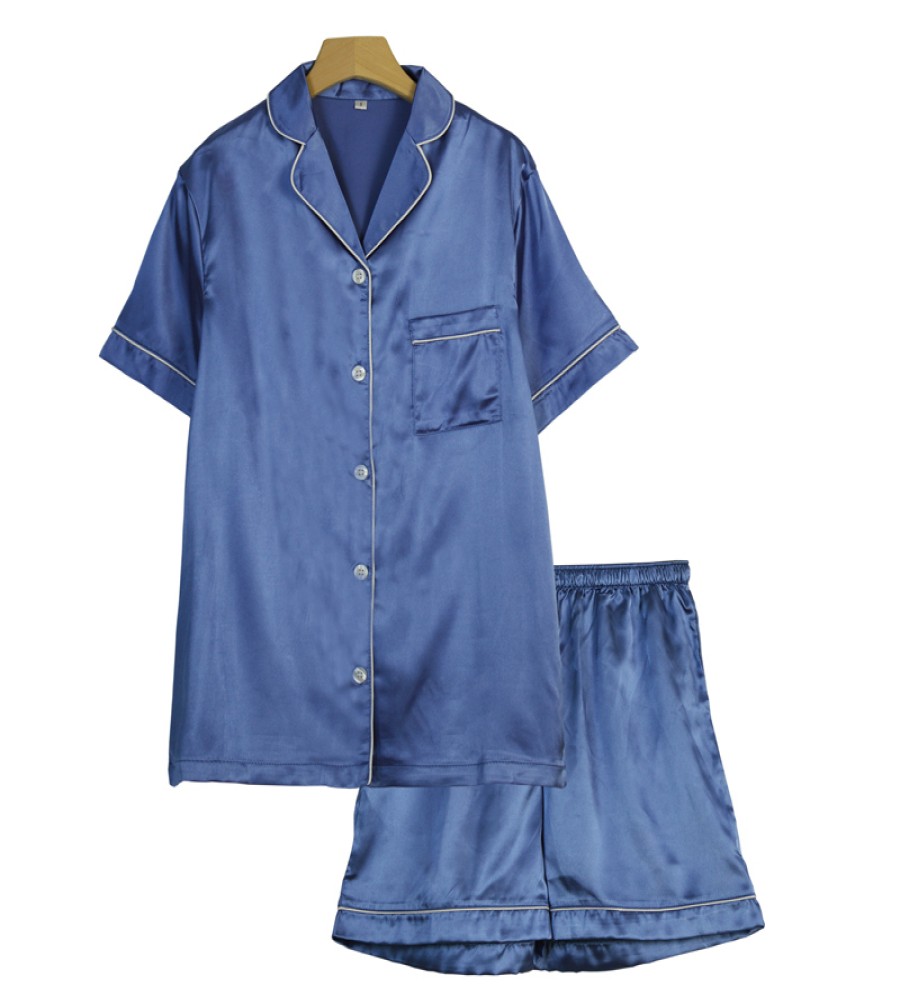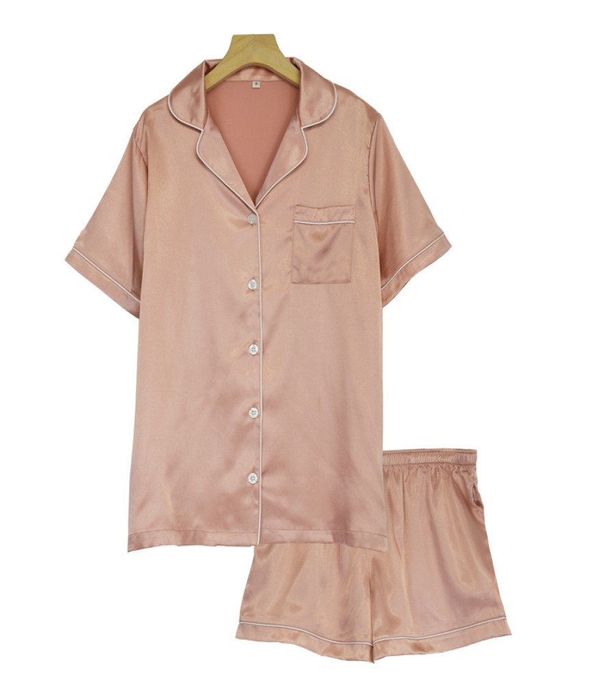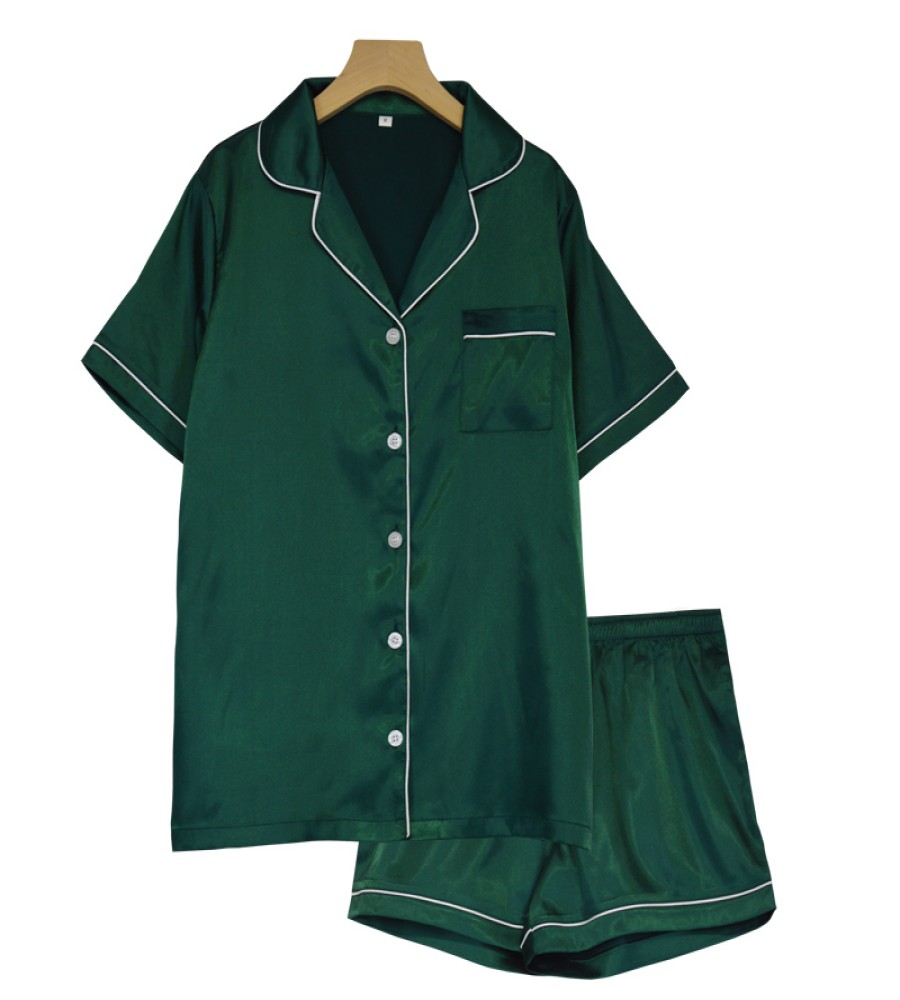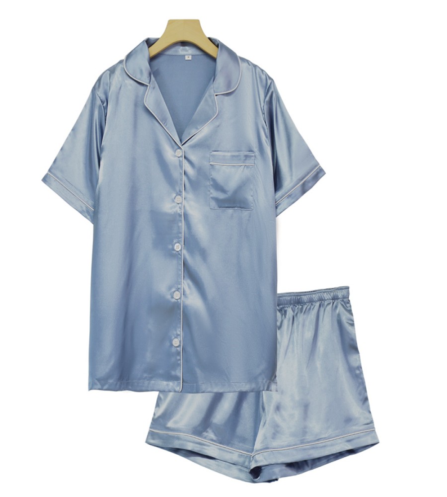 WomenTwo-Piece Sets Sleepwear Button-Down Pj Sets Womens Silk Satin short pant Set