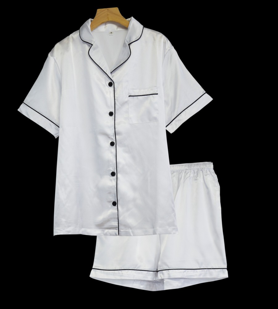 Pattern Type= Solid Material= Satin Silk fabric Feature= QUICK DRY, Silk soft Gender= Women Collar= Others Fabric Type= Satin silk Item Type= Women set Closure Type= Elastic Waist Length= Shorts Season= All season Sleeve Length(cm)= Short Brand Name= MediTex Garments Size = S-M-L-XL-XXL, 3XXL, 4XXL, 5XXL