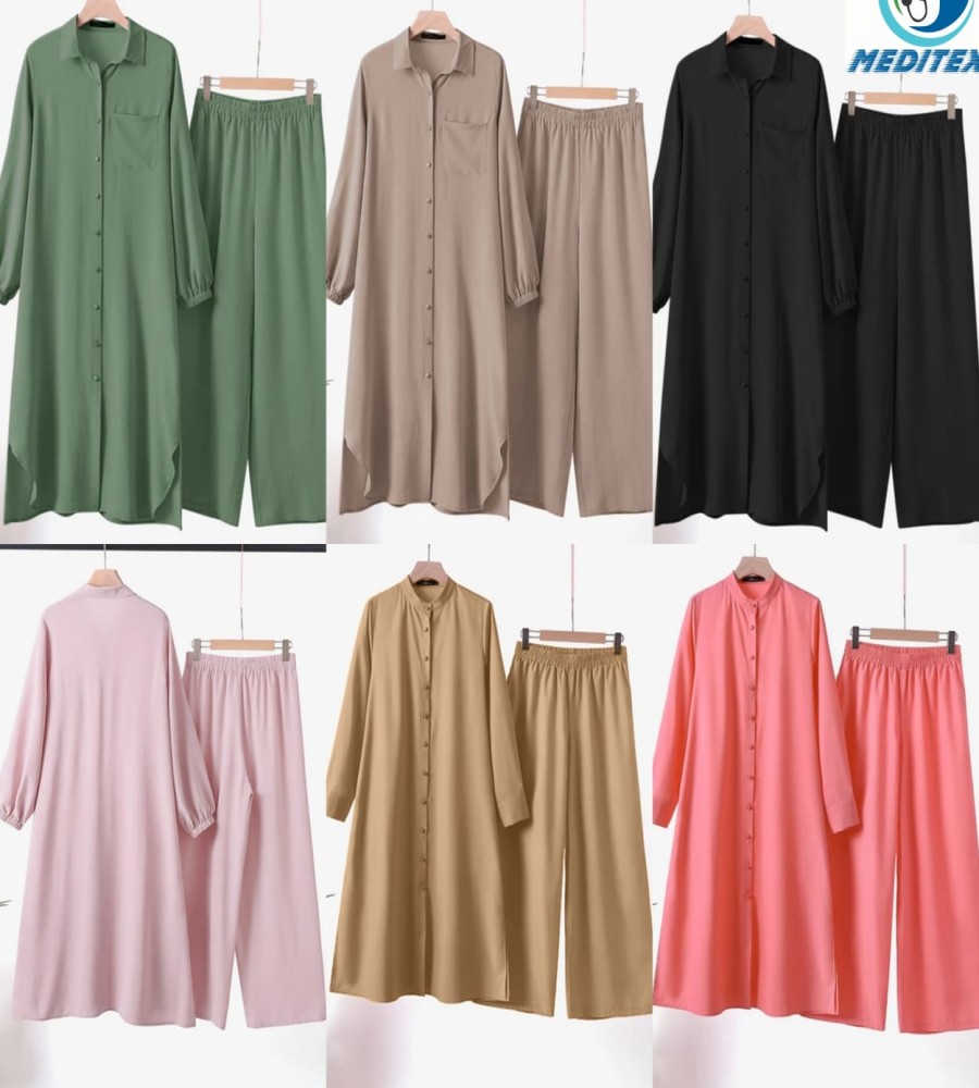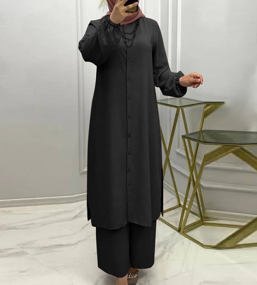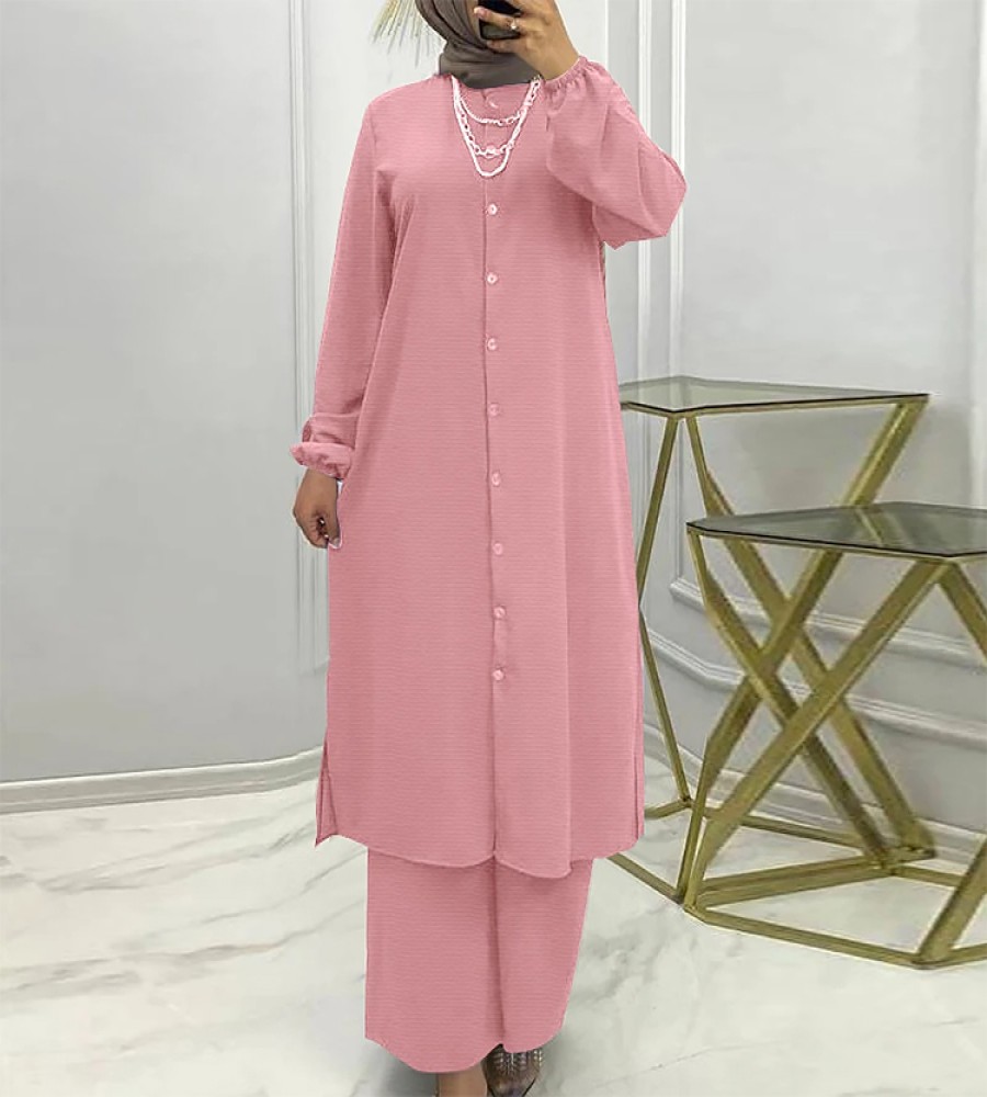 1200 view ProductLadis fashionable abaya suit women long shirts wide leg pants Muslim fashion matching sets 2 pieces abaya Turkish outfits