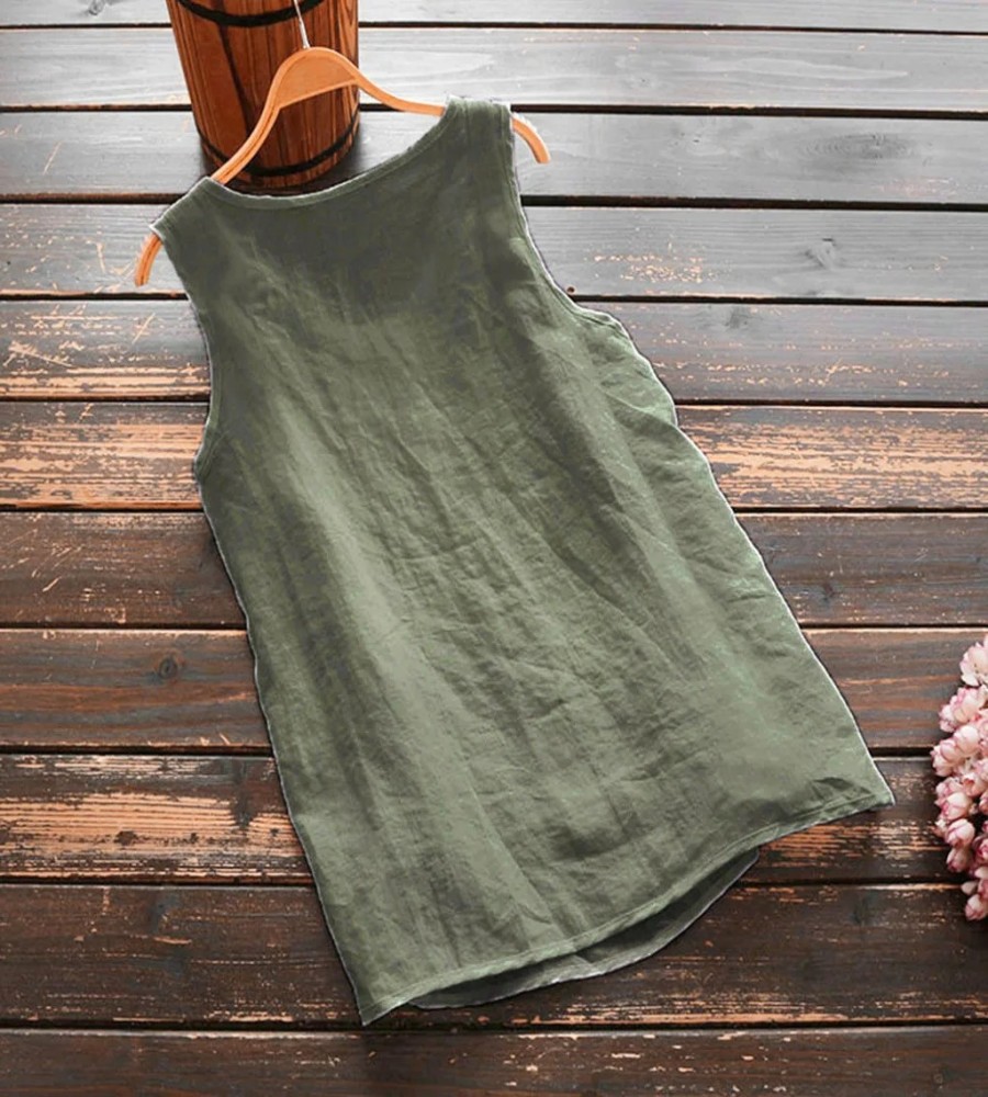 850 view ProductWomen's Tank Top Solid Color Top Vest Casual Vintage Linen Summer Tops Tee Sleeveless Button Women Tee Shirts