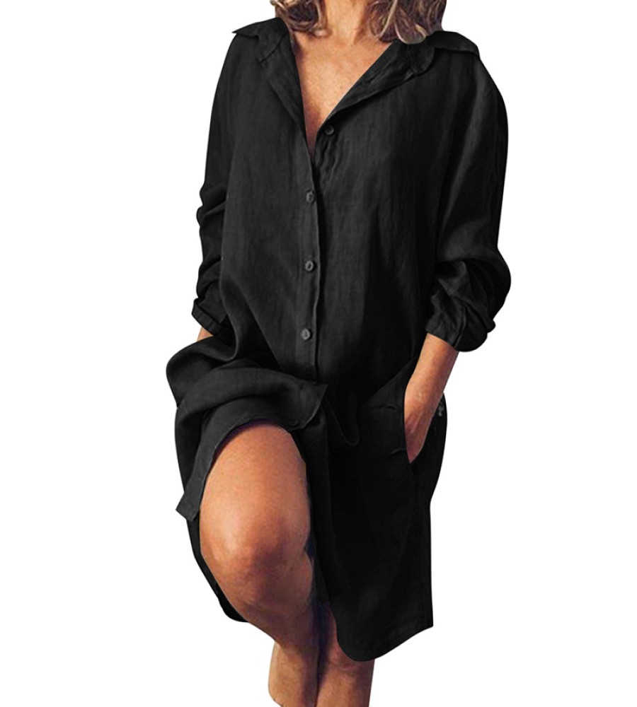 850 view ProductWomen Linen Cotton Summer Casual Vintage Clothing Vintage Loose Knee Length Dresses
