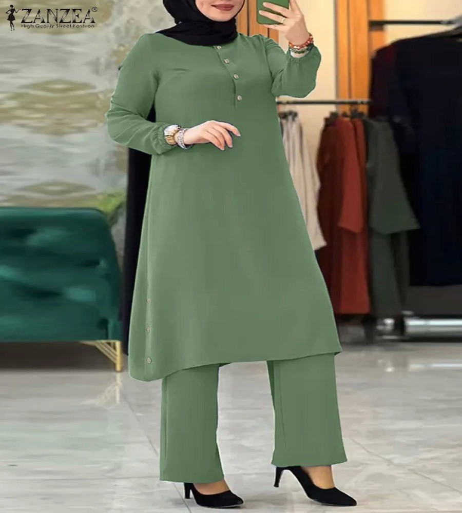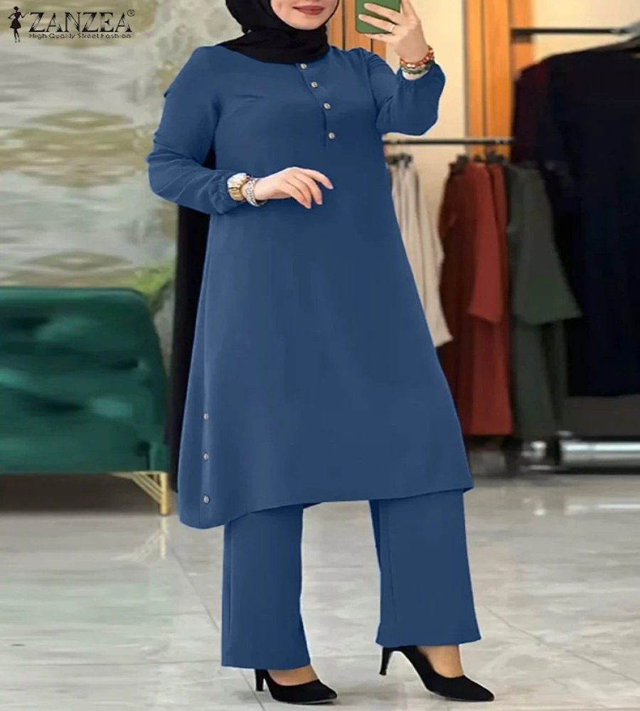 • The set includes a long-sleeve blouse and wide-leg pants, perfect for urban tracksuits and everyday wear.