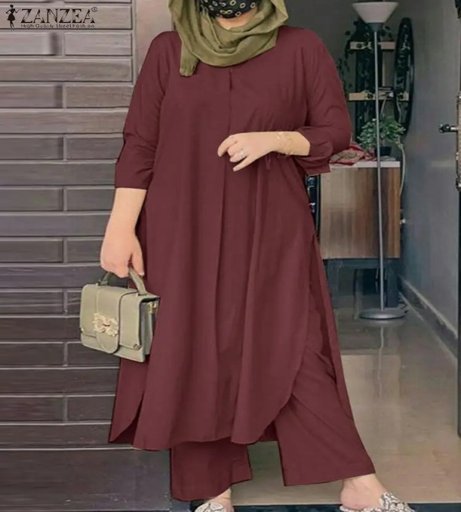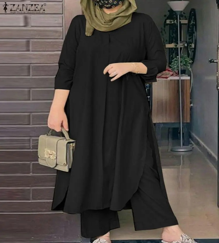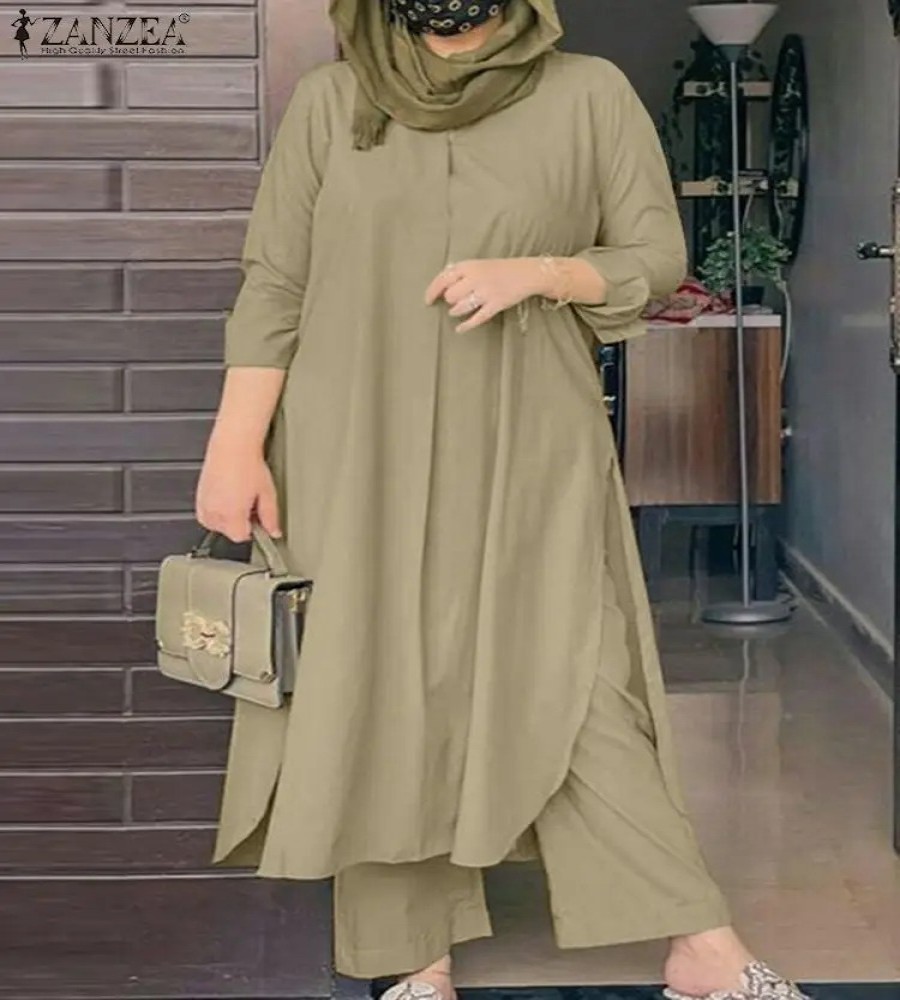 1800 view ProductWomen Long Sleeve Tops Wide Leg Pant Sets 2PCS IsIamic Outifits Elegant Urban Tracksuits Matching Sets