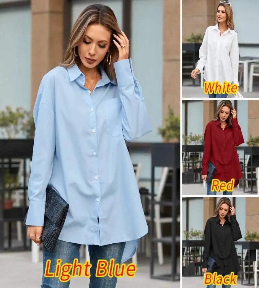 850 view ProductLadies qualityful Casual Blusen Frauen Tasten Split Shirts Mode Asymmetrische Blusas Mujer Damen Langarm Tops