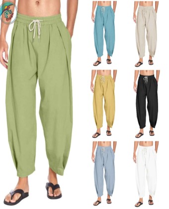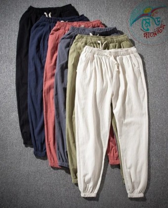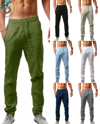 Men’s Cotton Linen Drop Crotch Casual Pa...