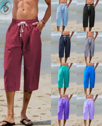 Men’s Cotton Linen Baggy Cropped Pants –...